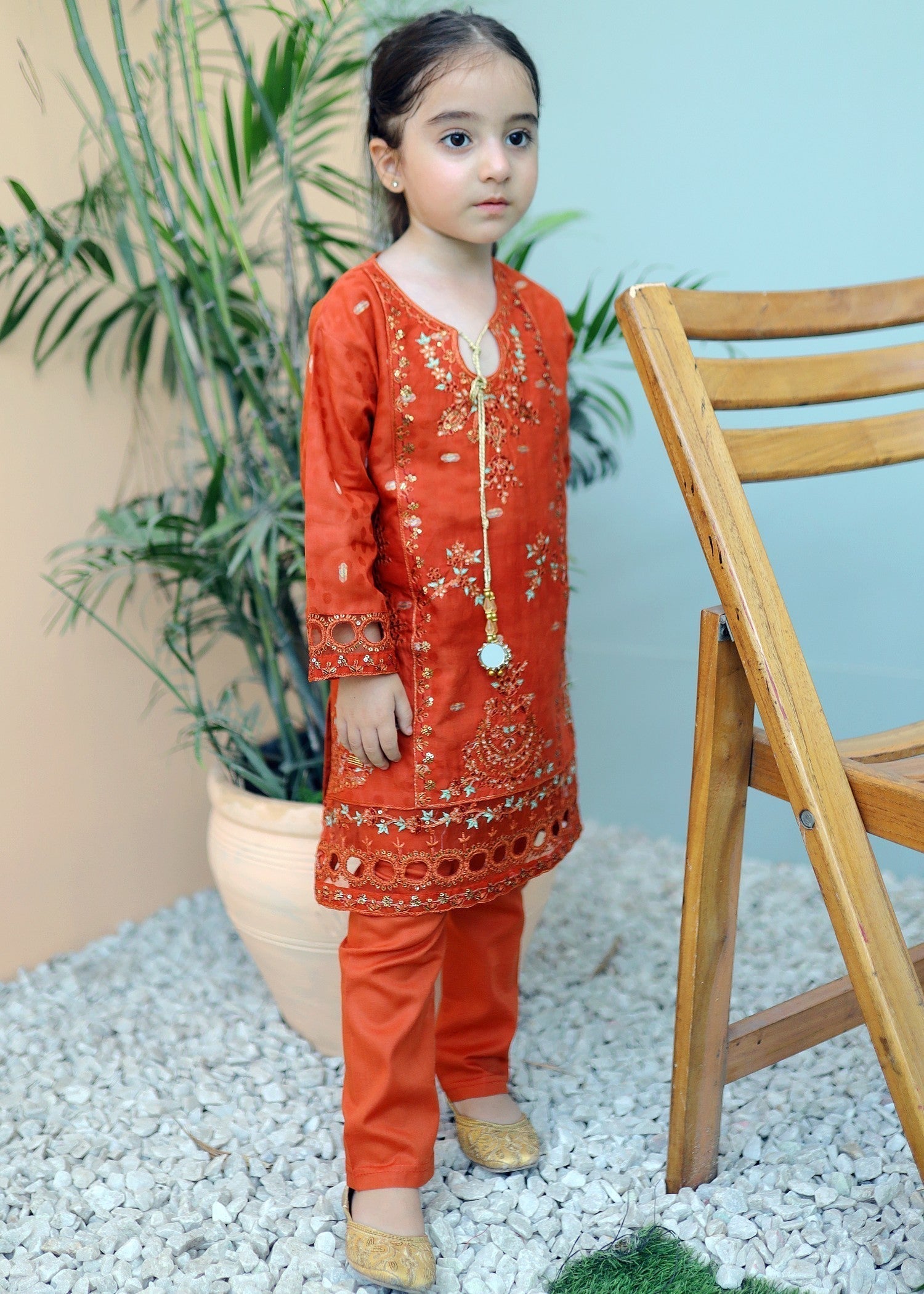 Chilli Orange 2pcs Embroidered Suit KST 075