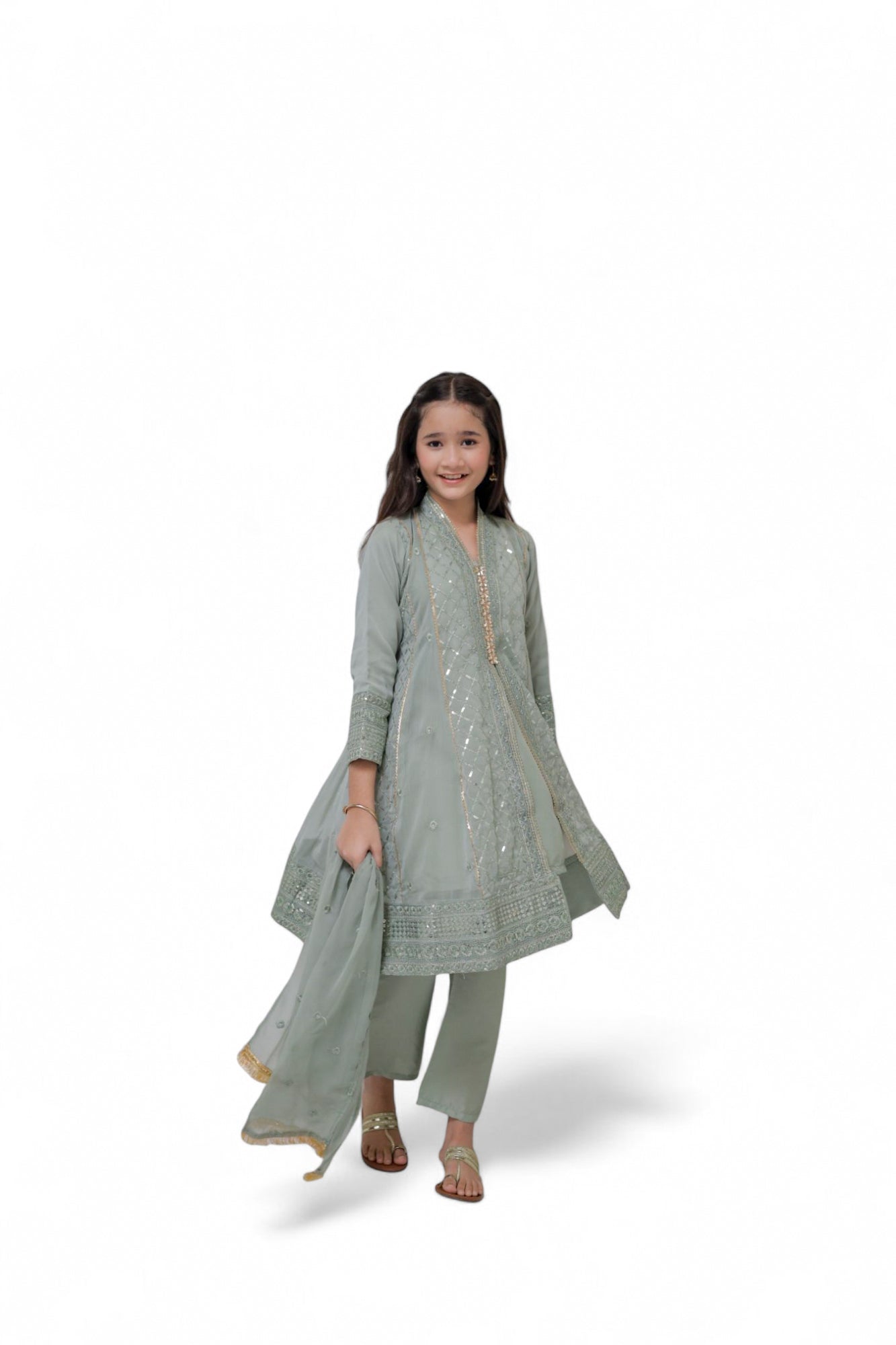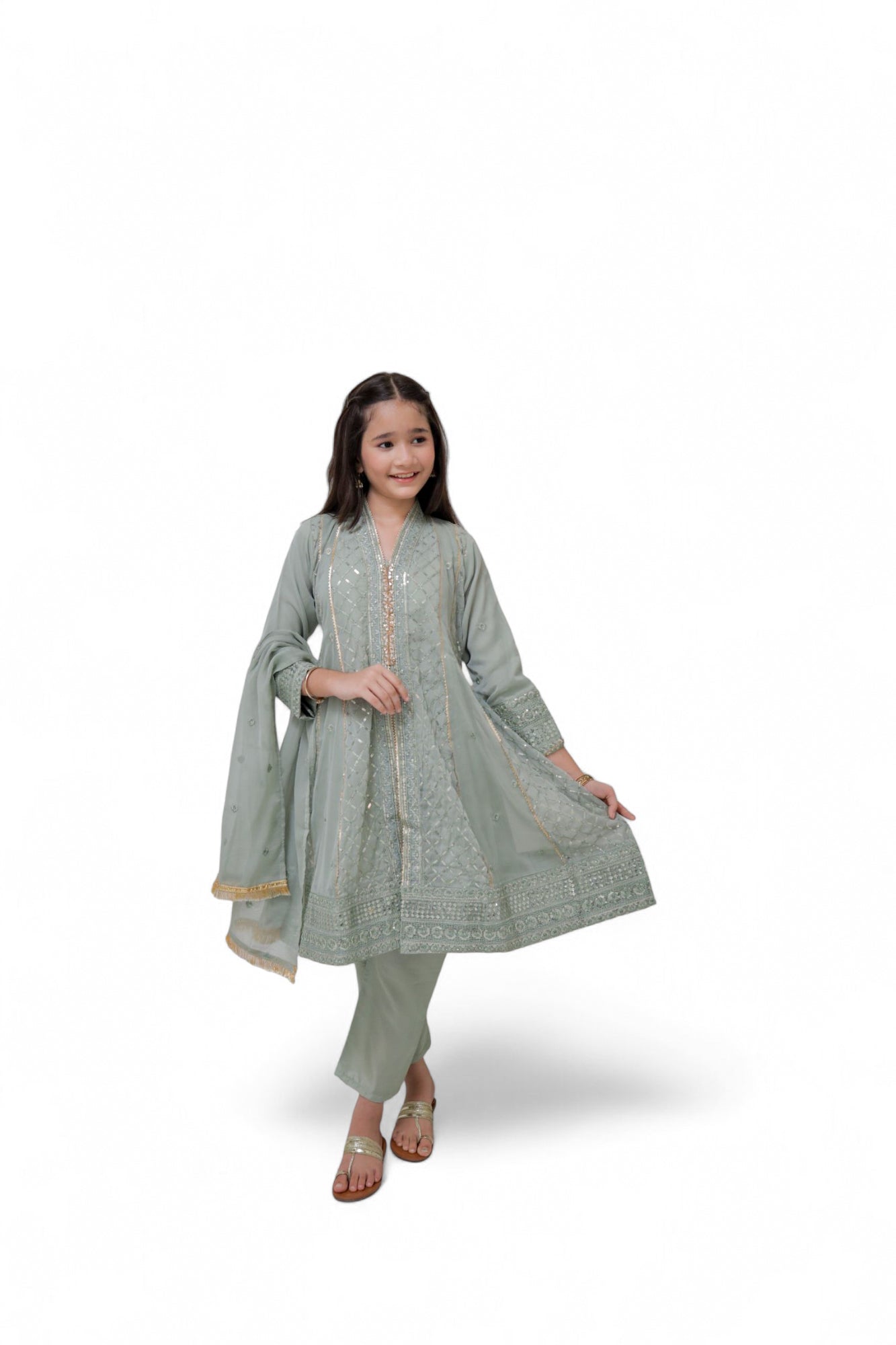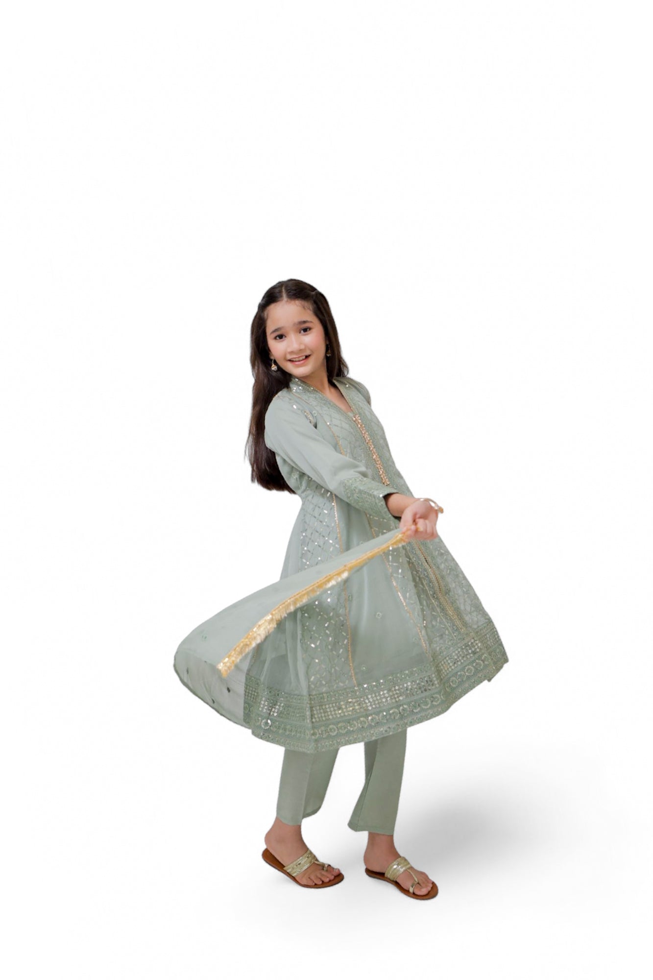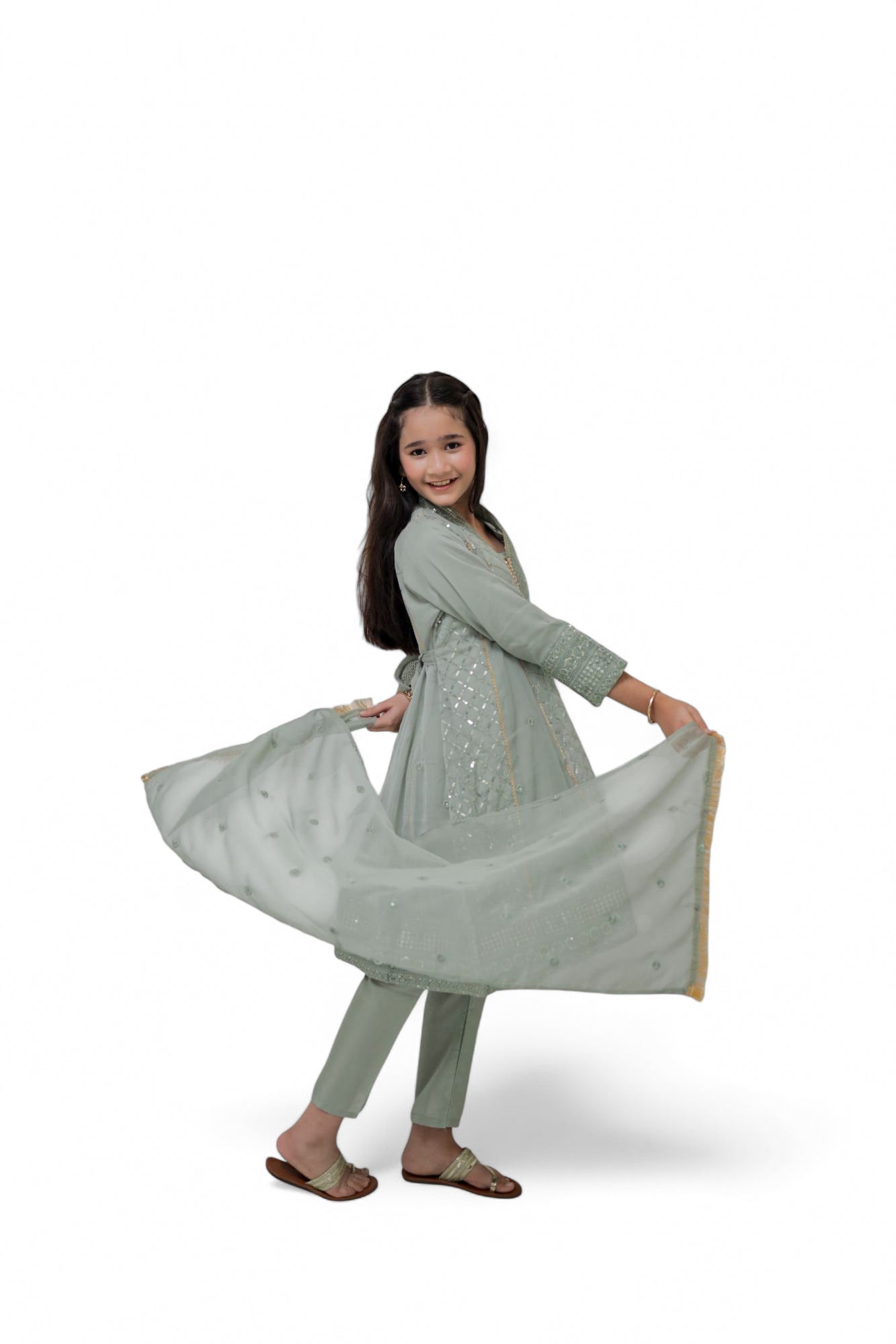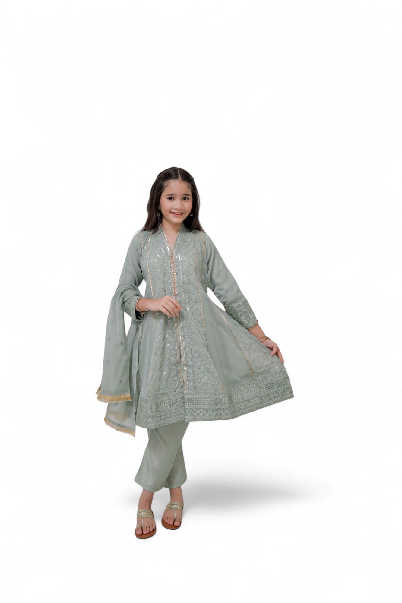 Shiffon Embroided Frock crafted specially for kids is adorned with exquisite Trouser is a testament to craftsmanship. This product is designed for all seasons.
