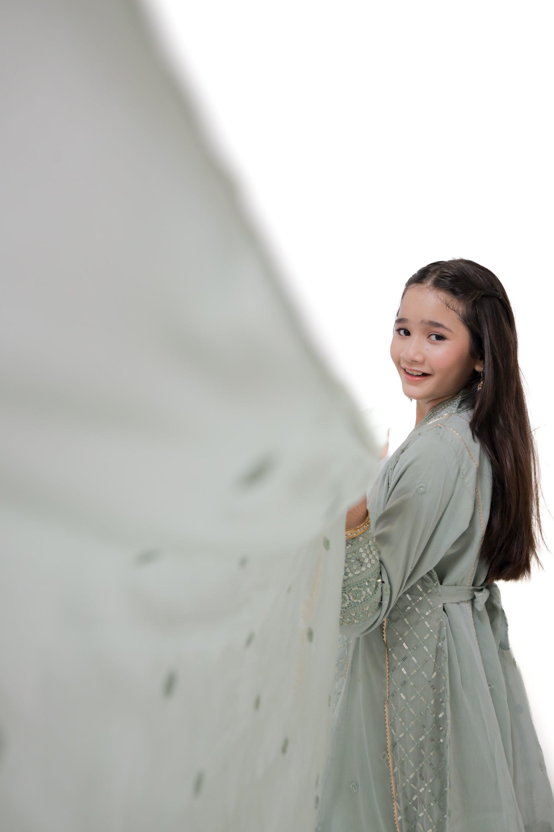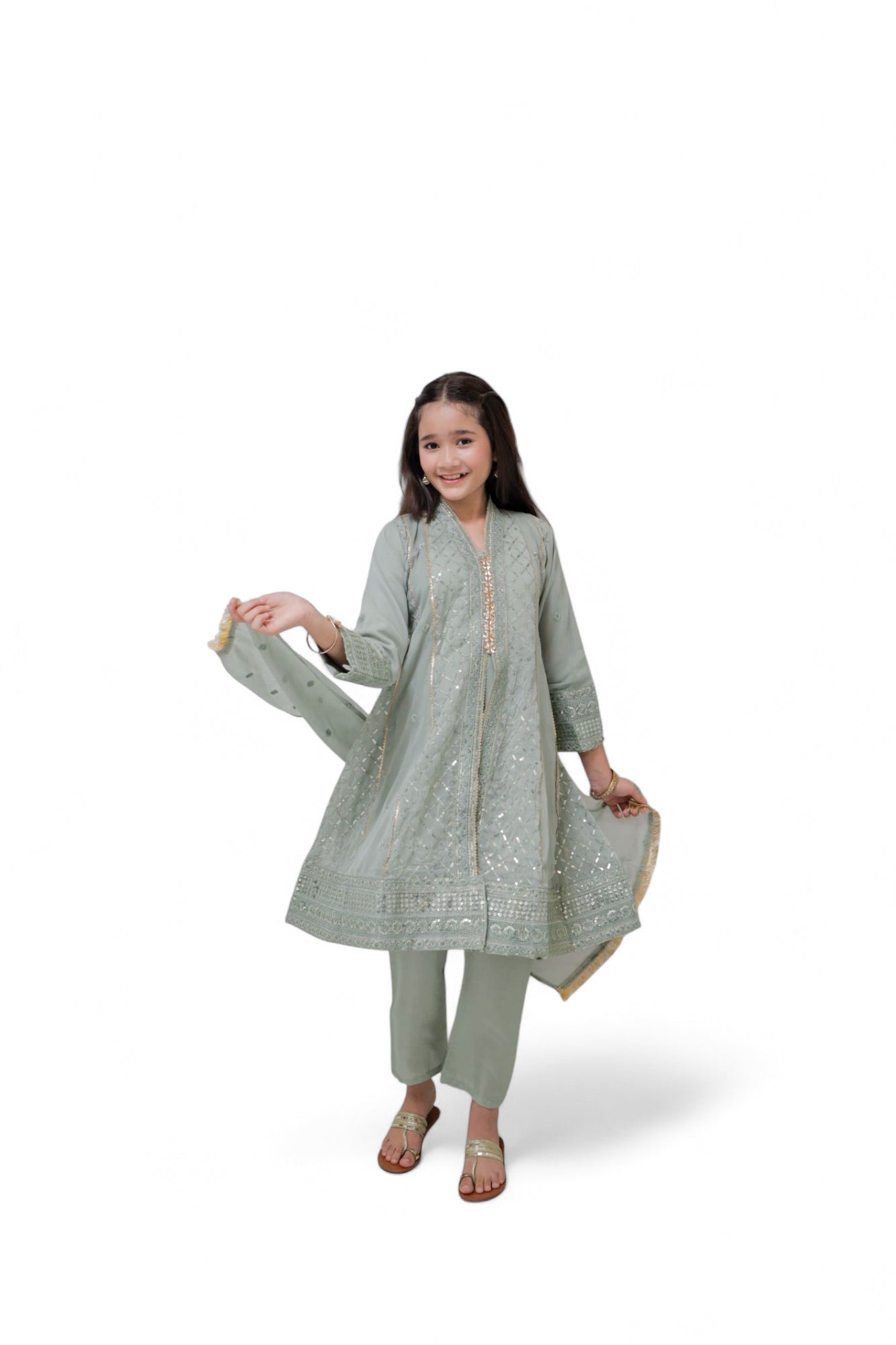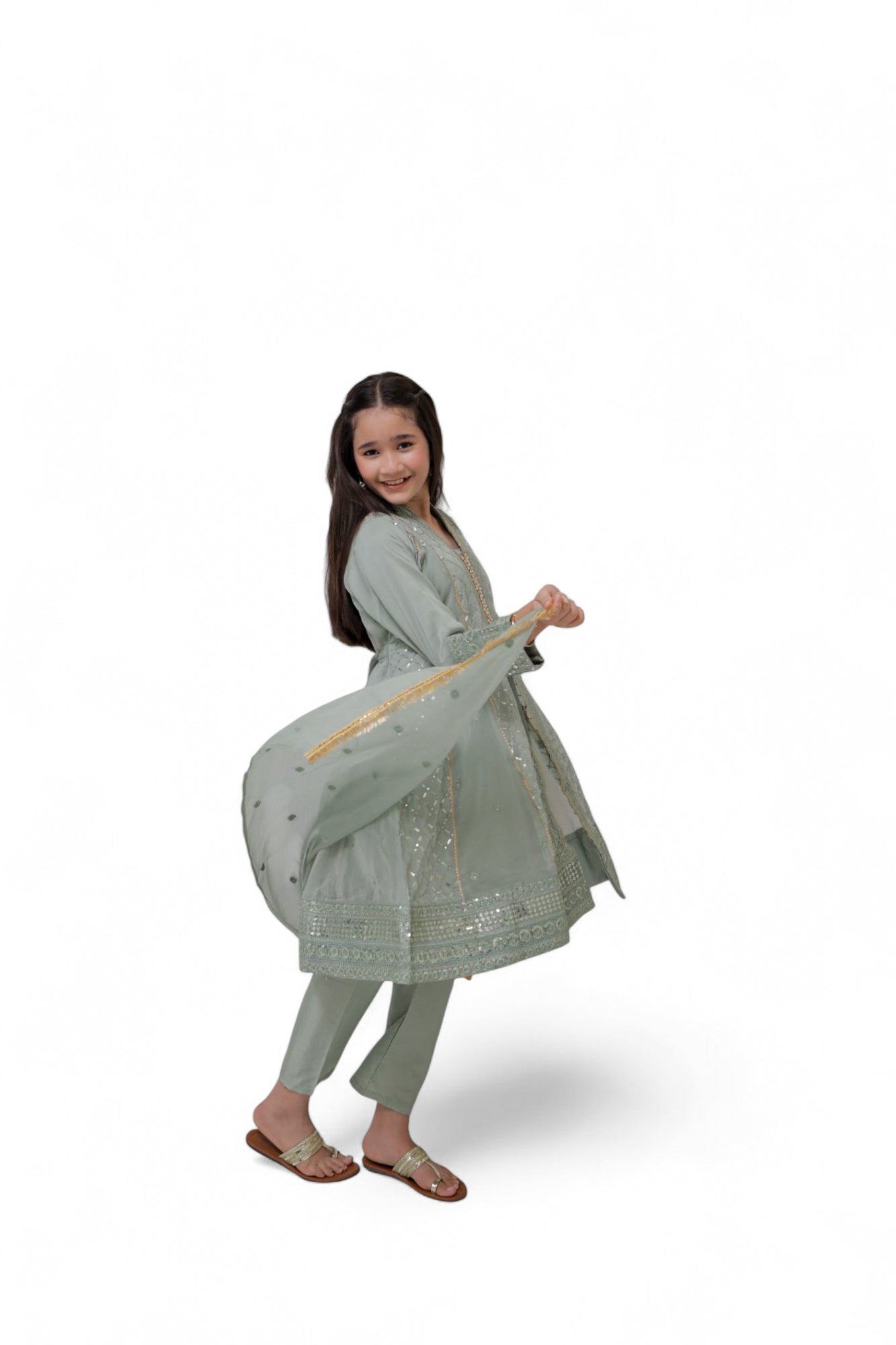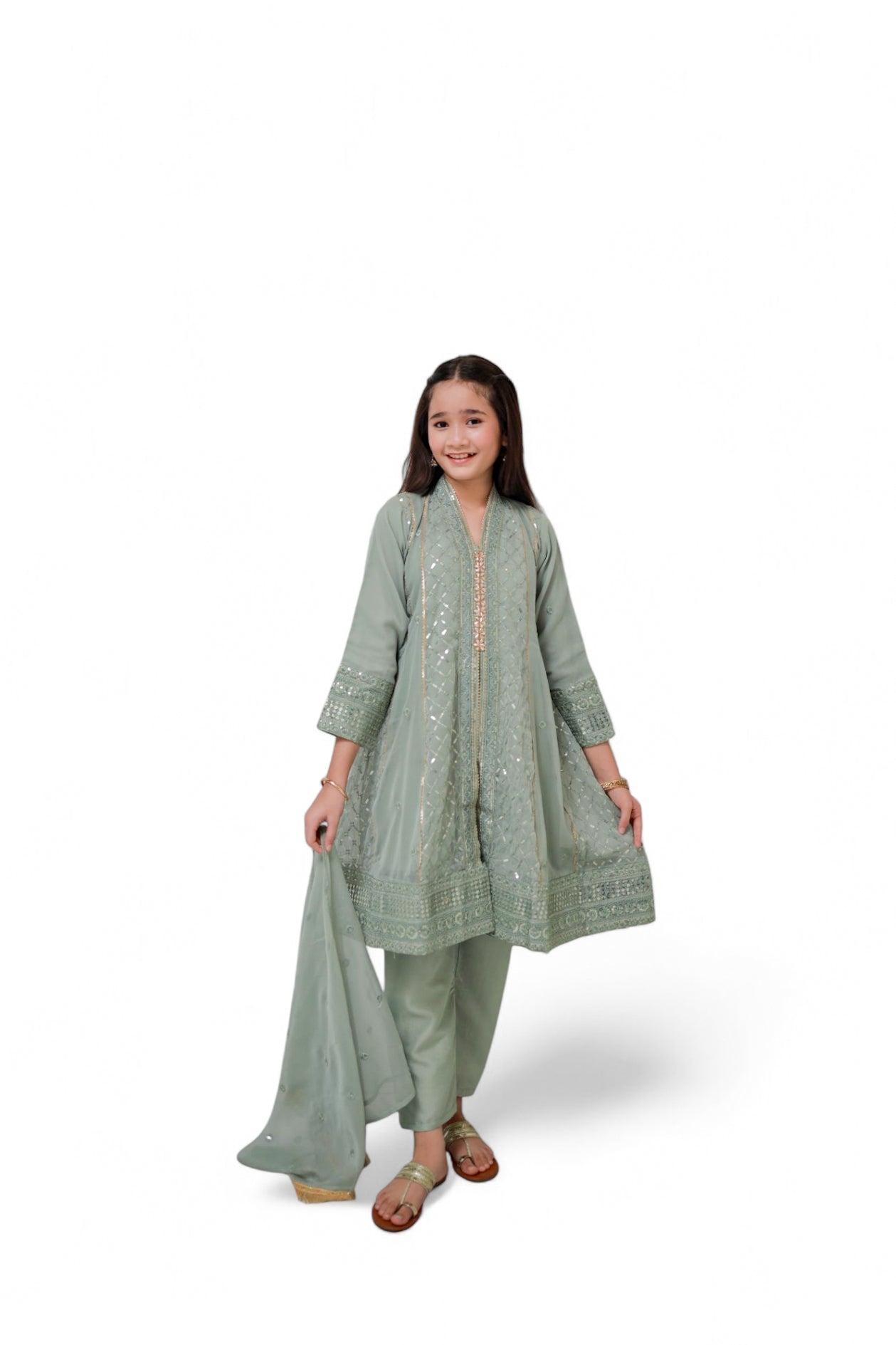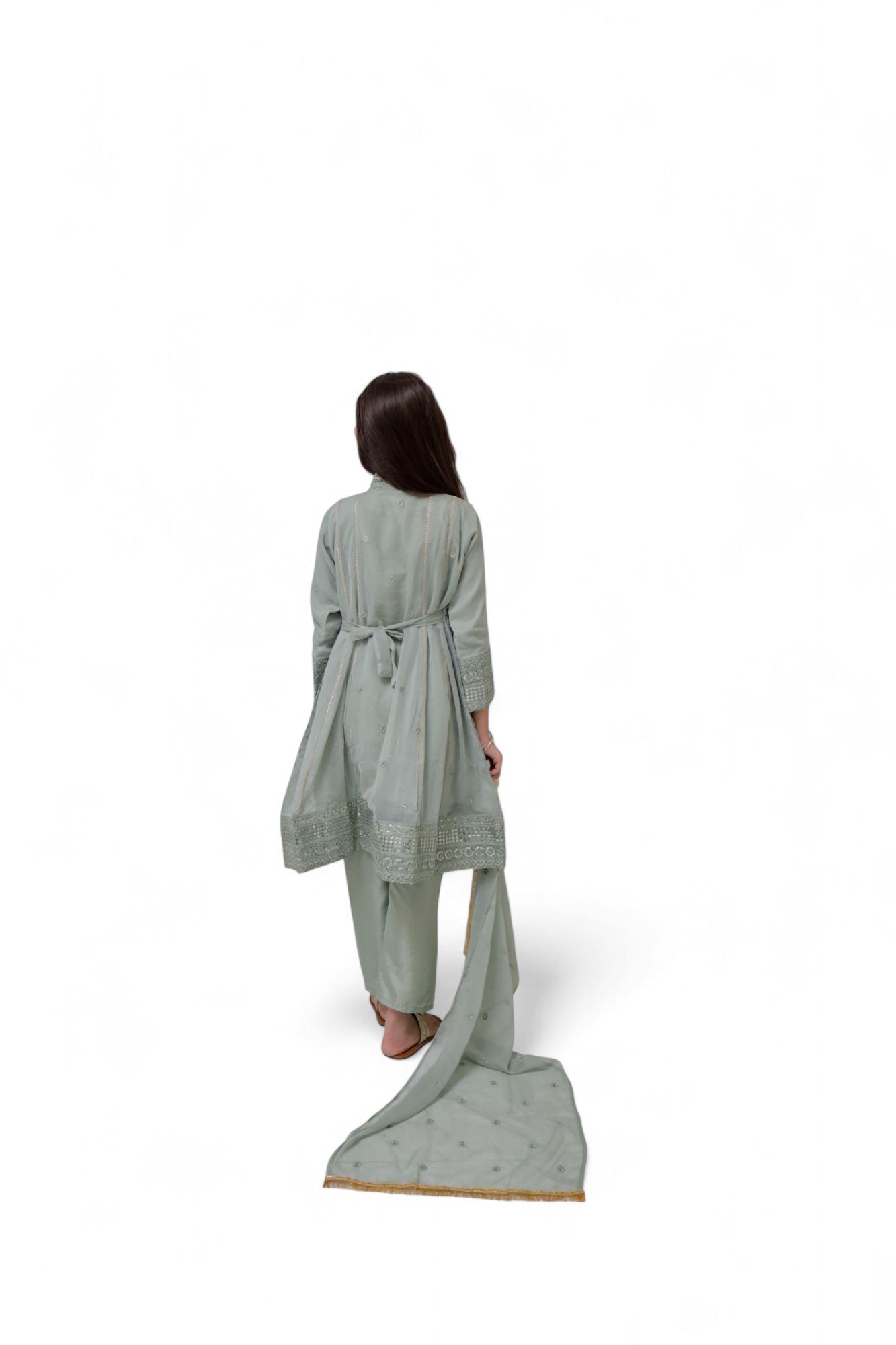 Color: Moss Green Design Cut: Frock + Trouser+ Dupatta (Dupatta Included)