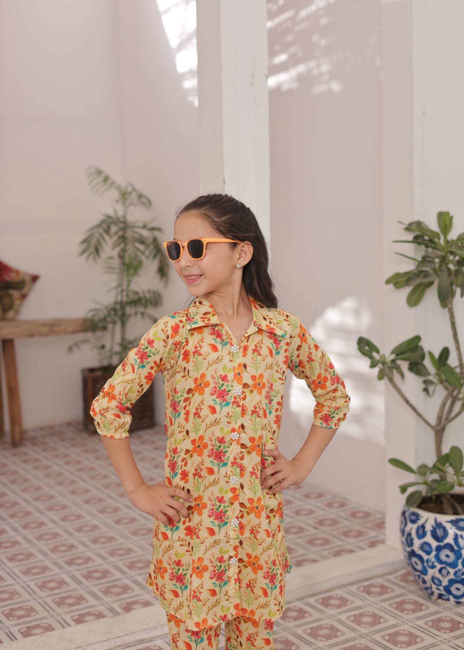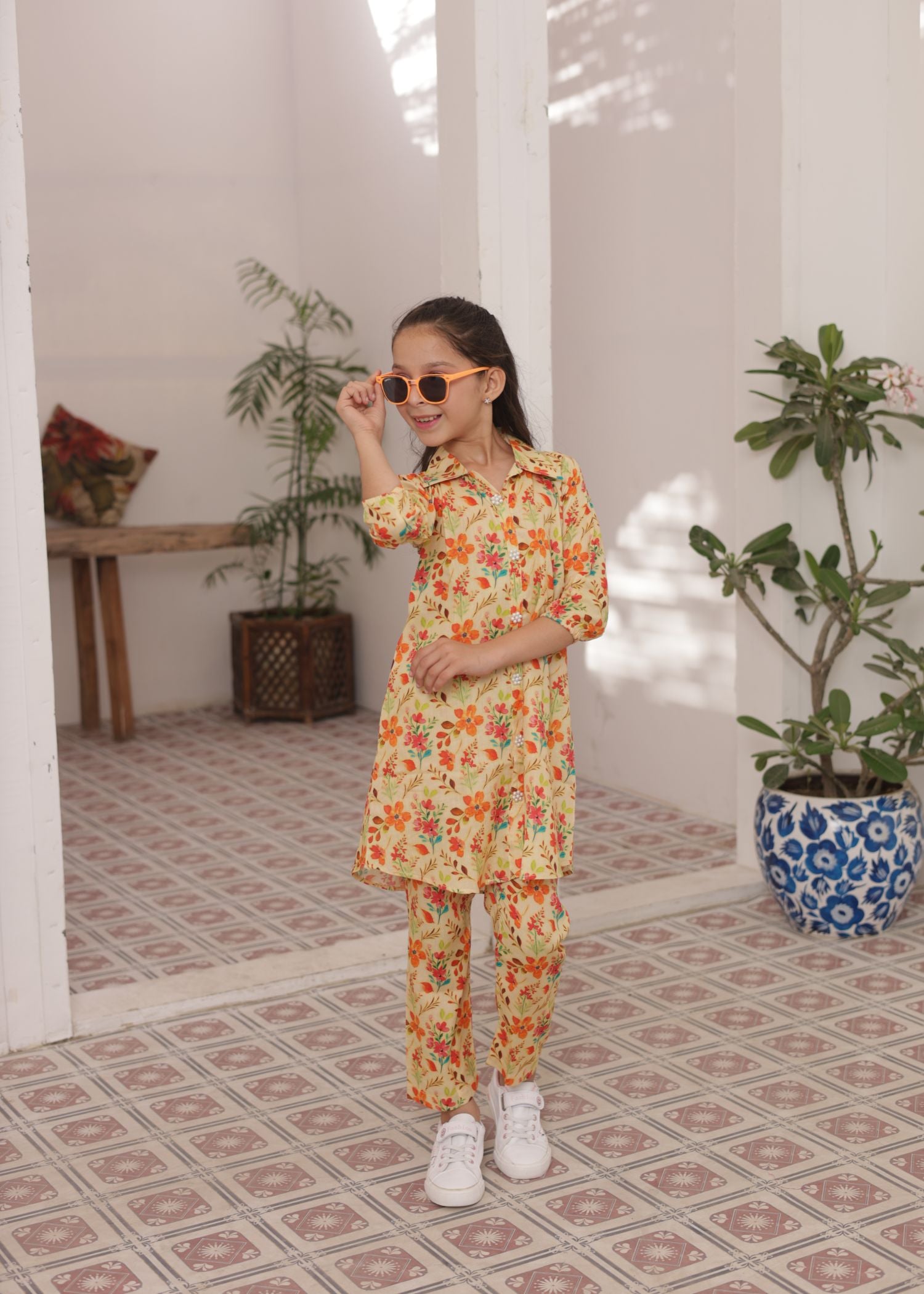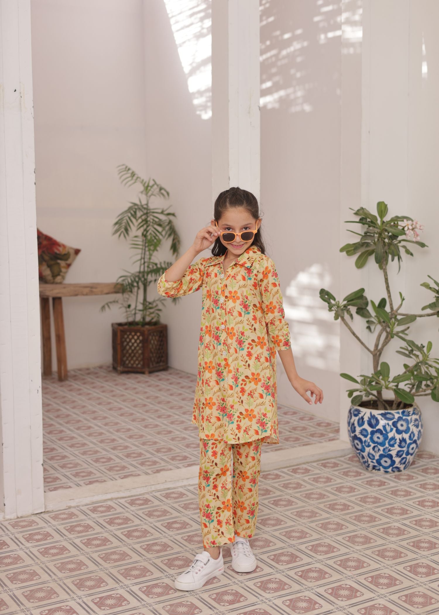 Enhance your child's wardrobe this summers with Khanak's Printed Lawn Stitched 2-Piece Co-ord set. This stylish ensemble includes a digitally printed shirt and cozy trousers, making it the ideal choice for casual outings or fun-filled adventures