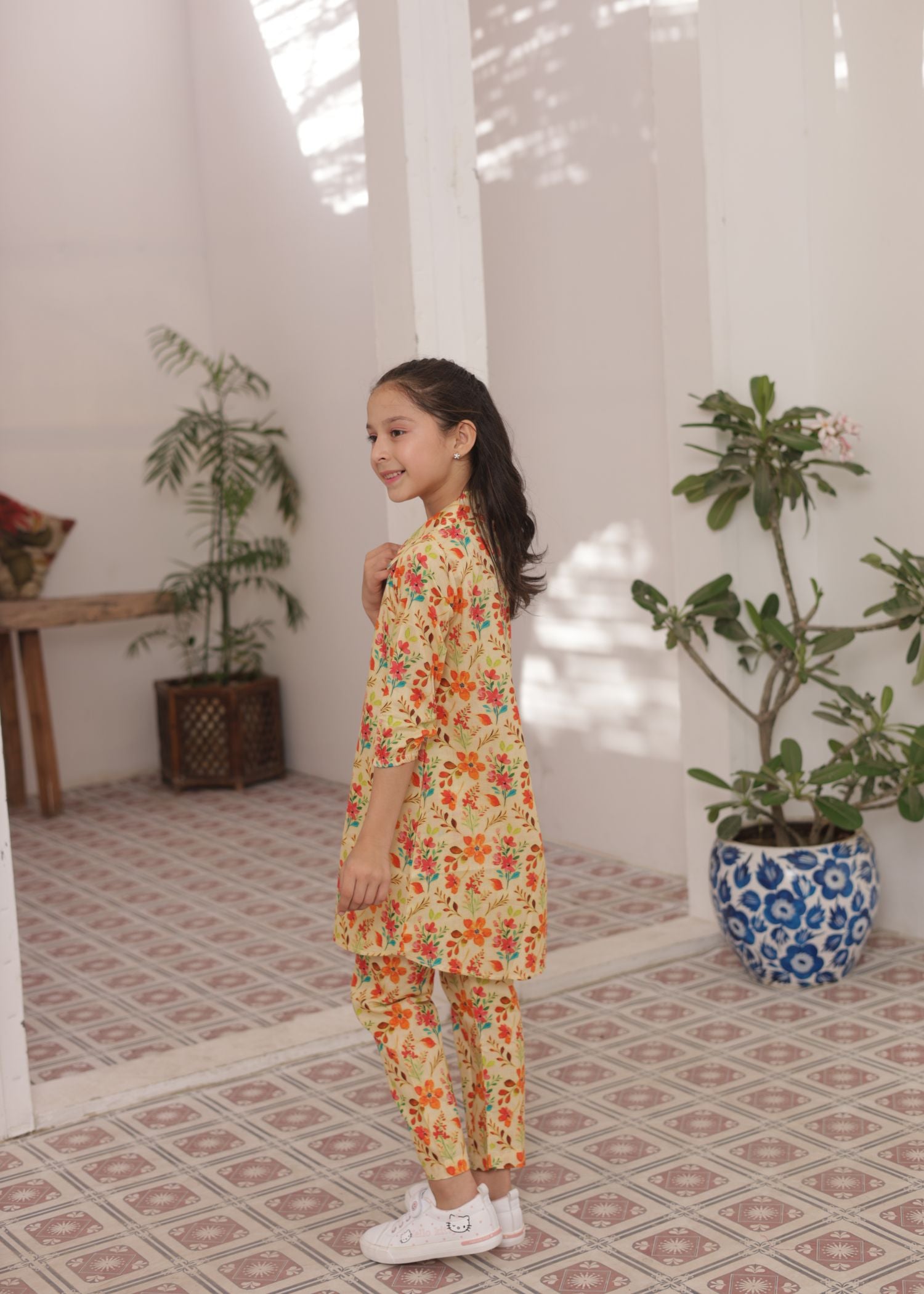 Pastel Cream 2pcs Printed Co-Ord Suit-KST 047
