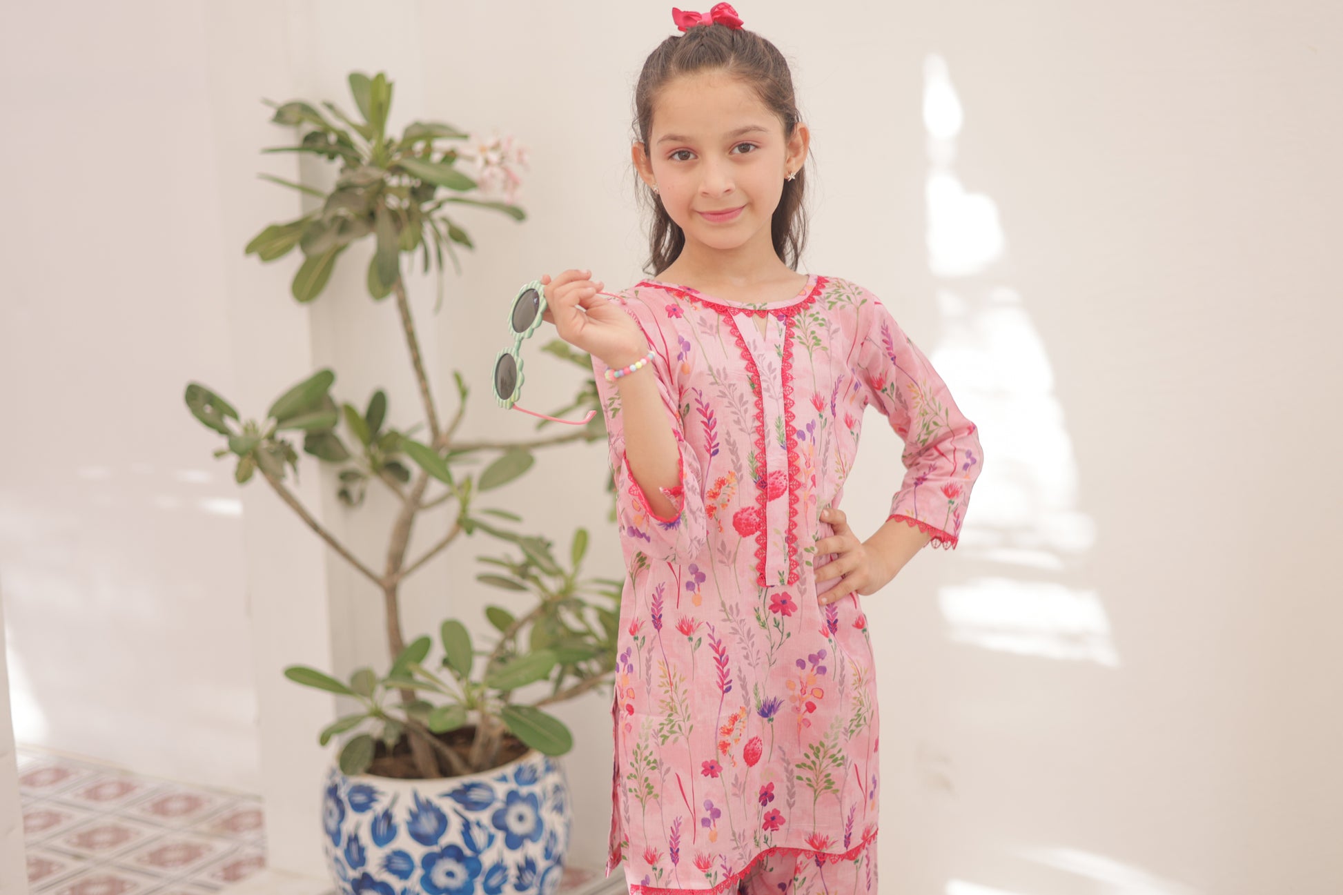 Rose Pink 2pcs Printed Gharara Suit-KST 052