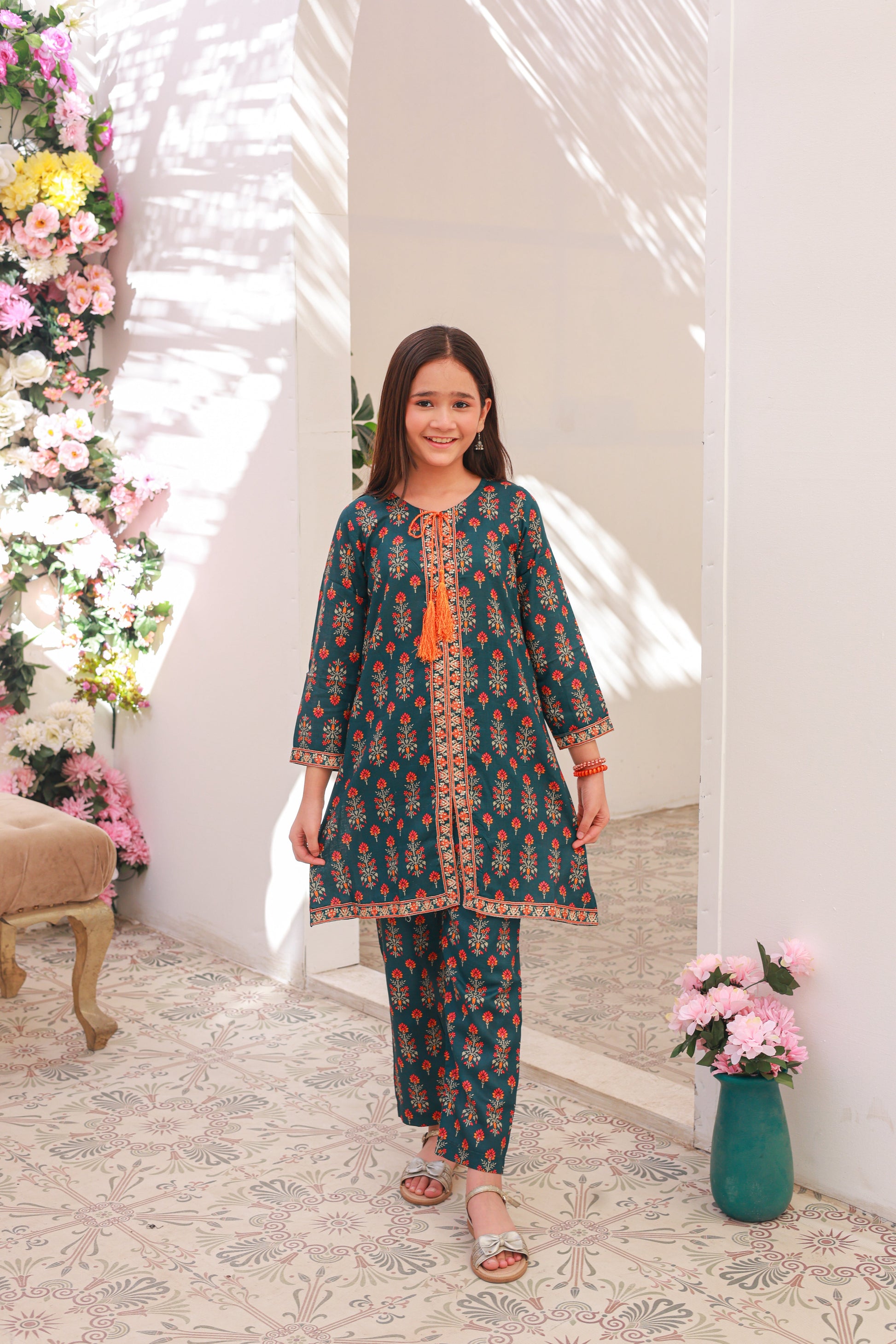 Sea Green Front Open Embroidered 2pcs-KST 006