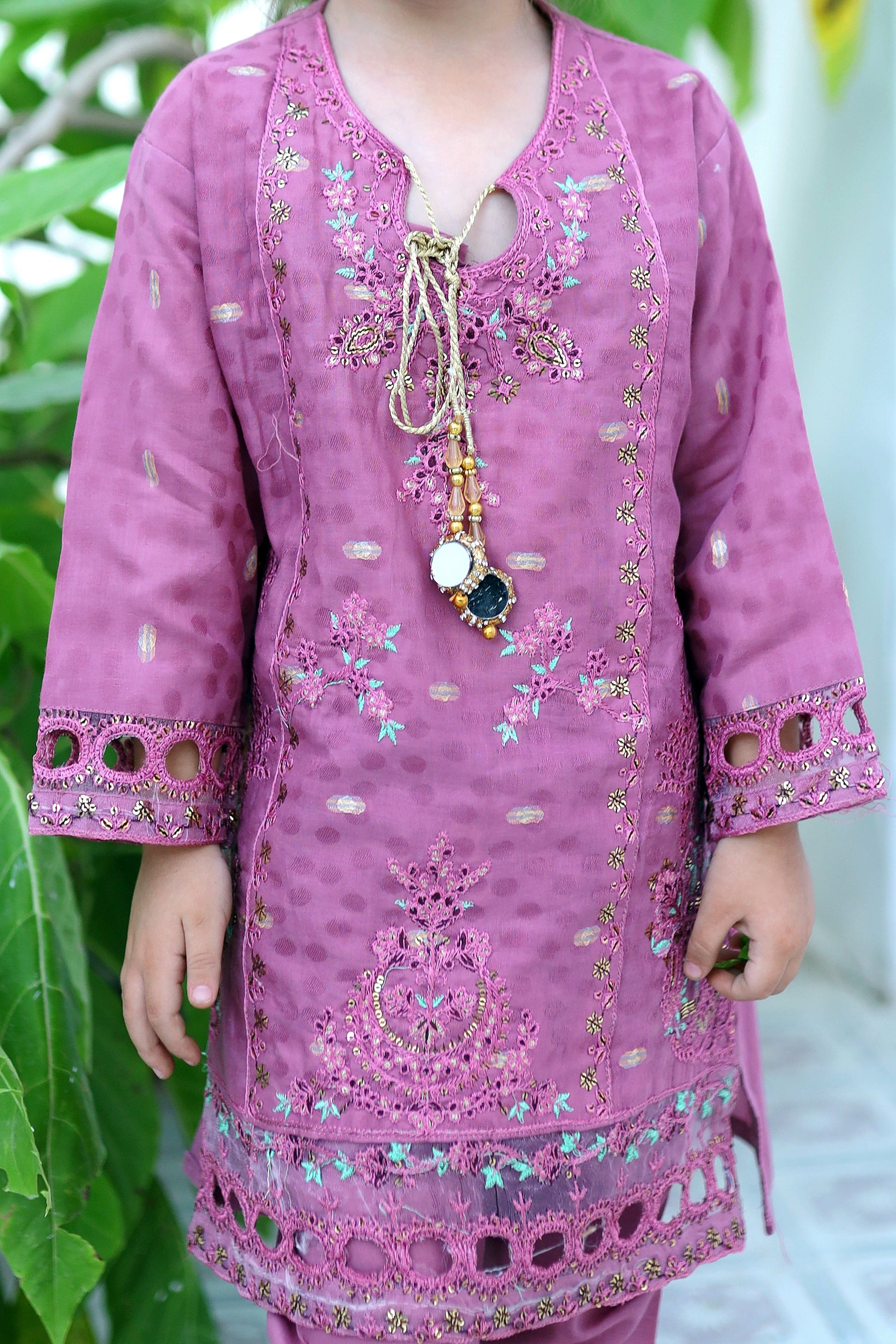 Fabric: Fine Soft Cotton Pattern: embroidery with lace work Color: Rasberry Pink Design/Cut: 2 Pcs Straight Shirt With Trouser. Elevate your child's fashion game with Khanak's Stitched Cotton lawn Shirt and Trouser set. Crafted specifically for kids, this sophisticated ensemble showcases high-quality cotton lawn fabric, offering a perfect blend of style and comfort. Ideal for both casual and semi-formal events, it’s a must-have addition to their wardrobe.