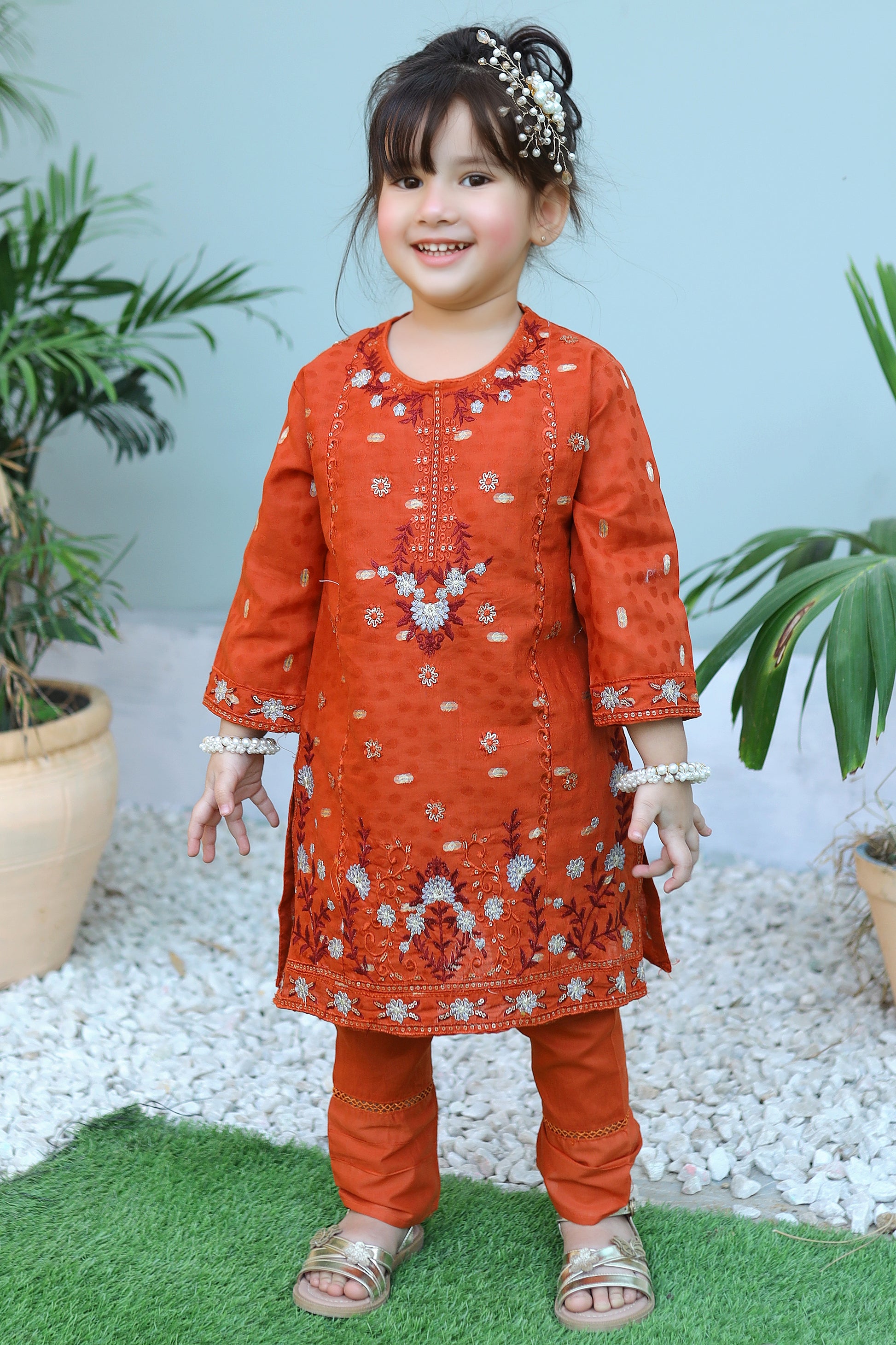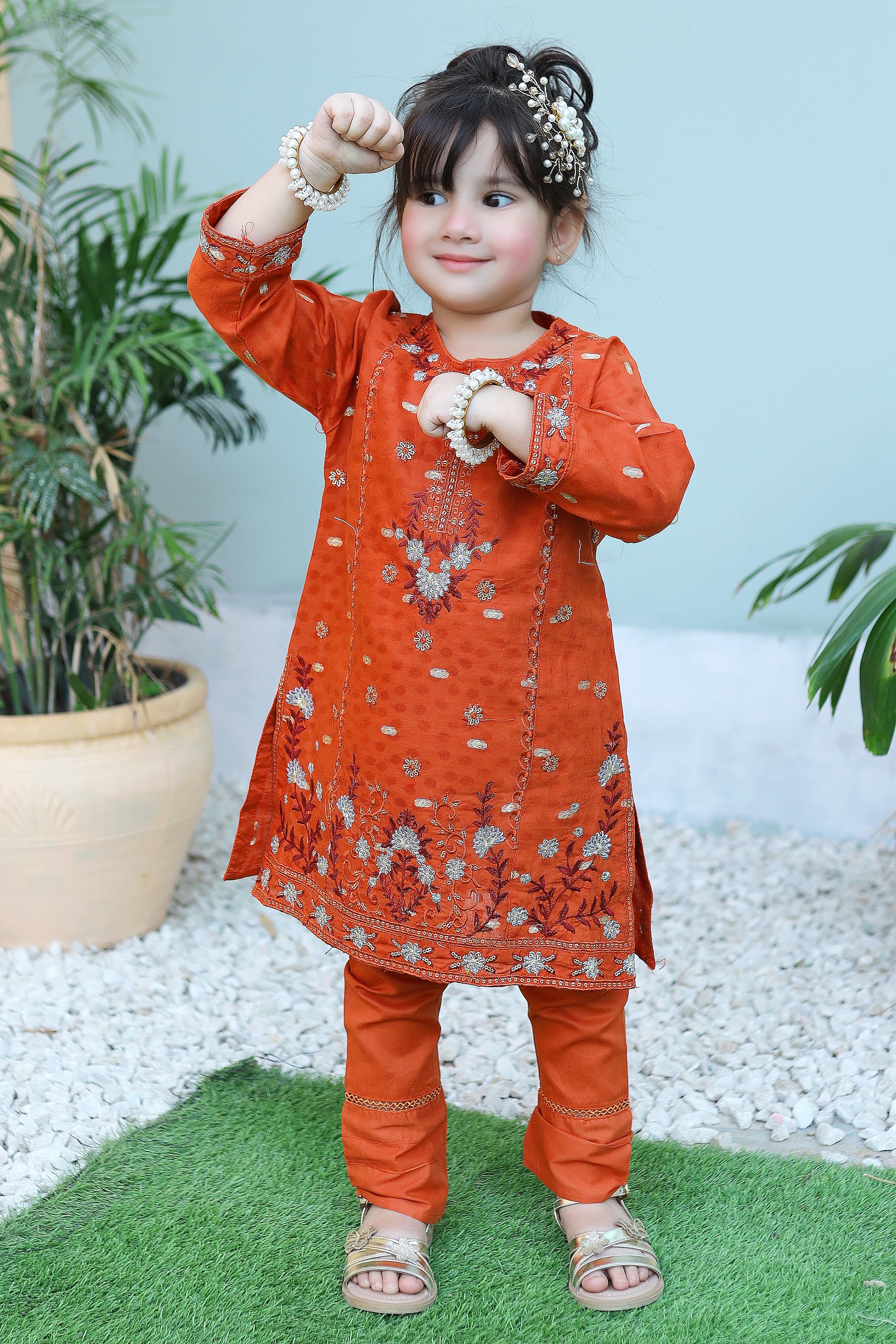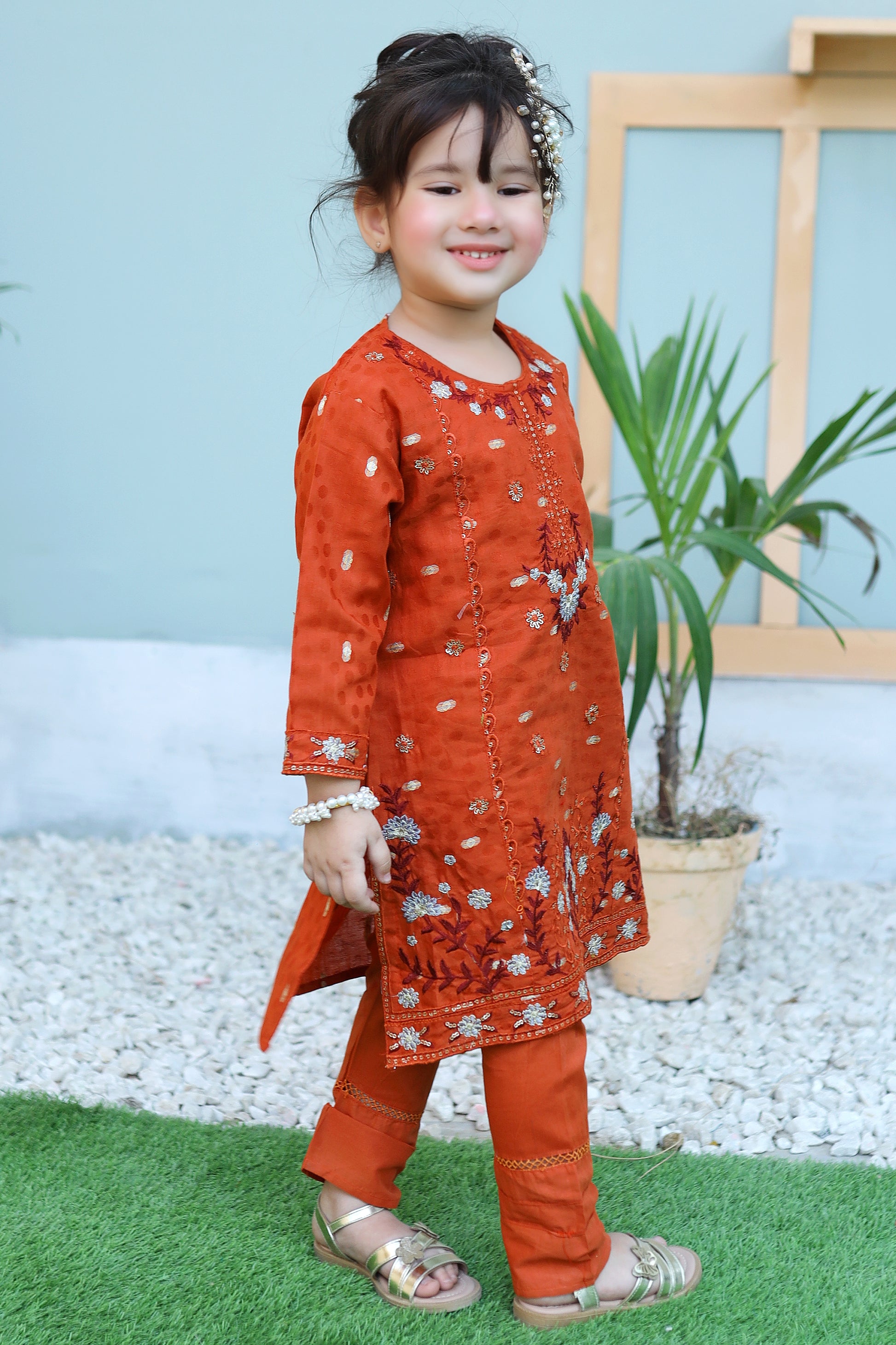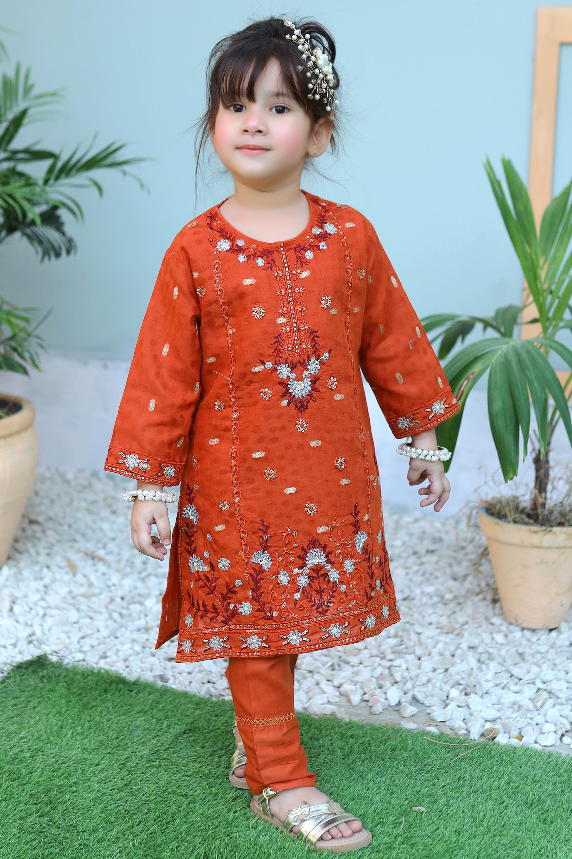 Autumn Orange Embroidered Gharara KST 086