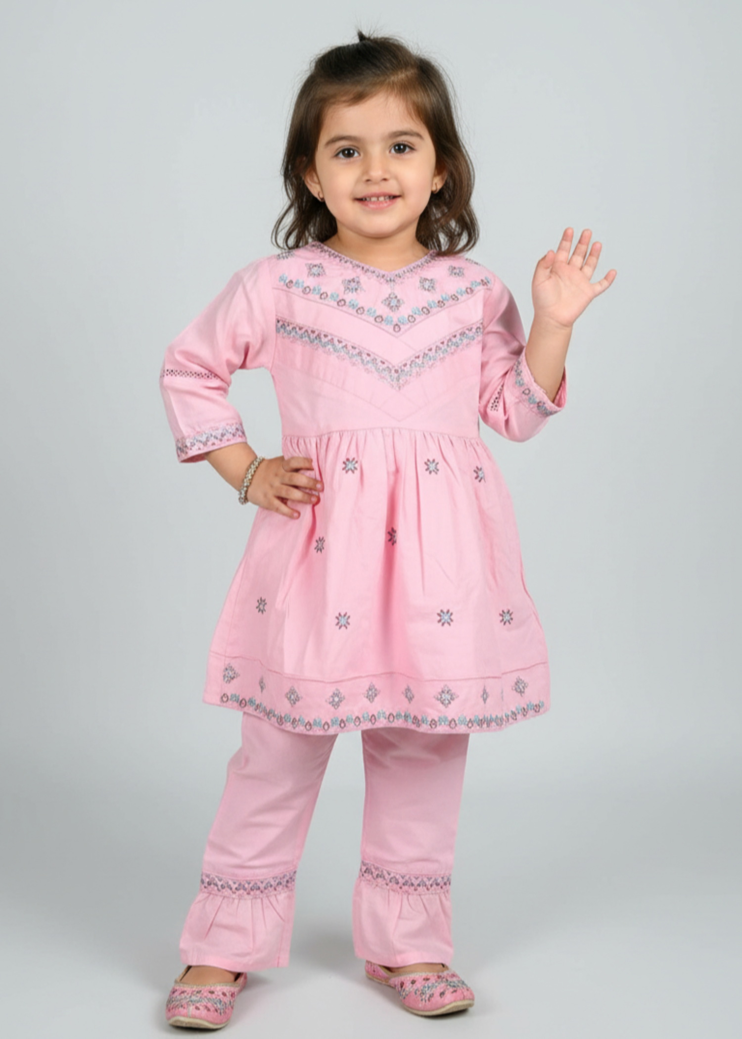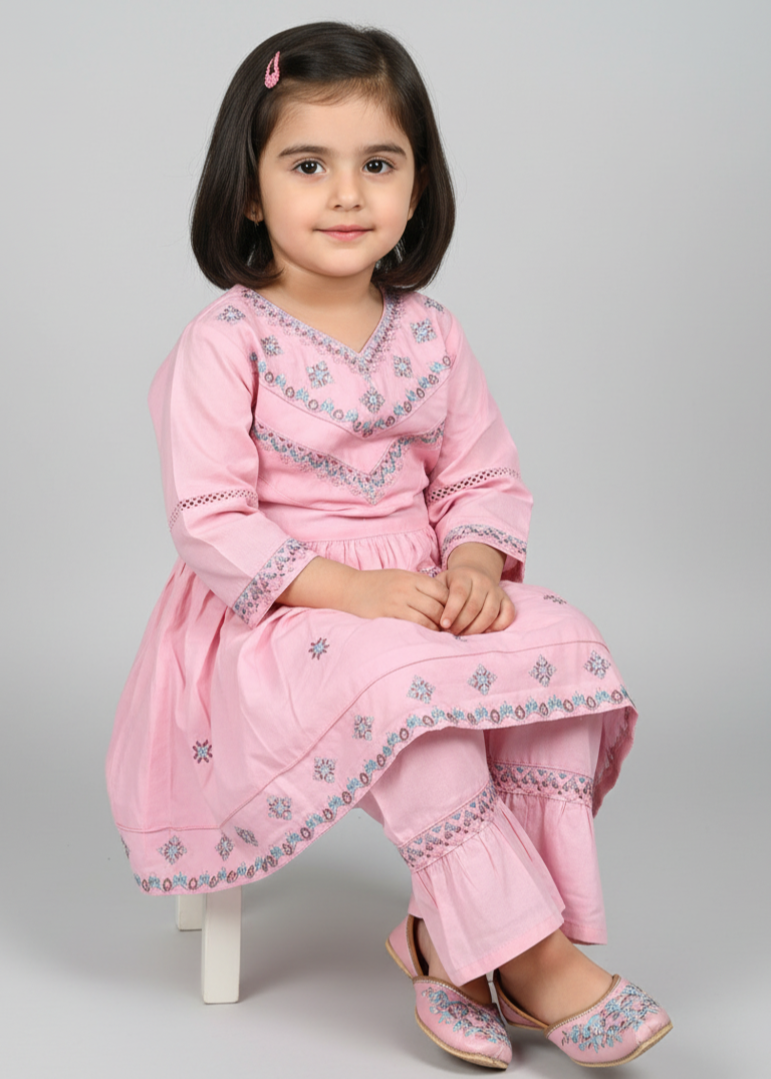 Fabric:Cotton Pattern: Hand Embroided Color: baby pink