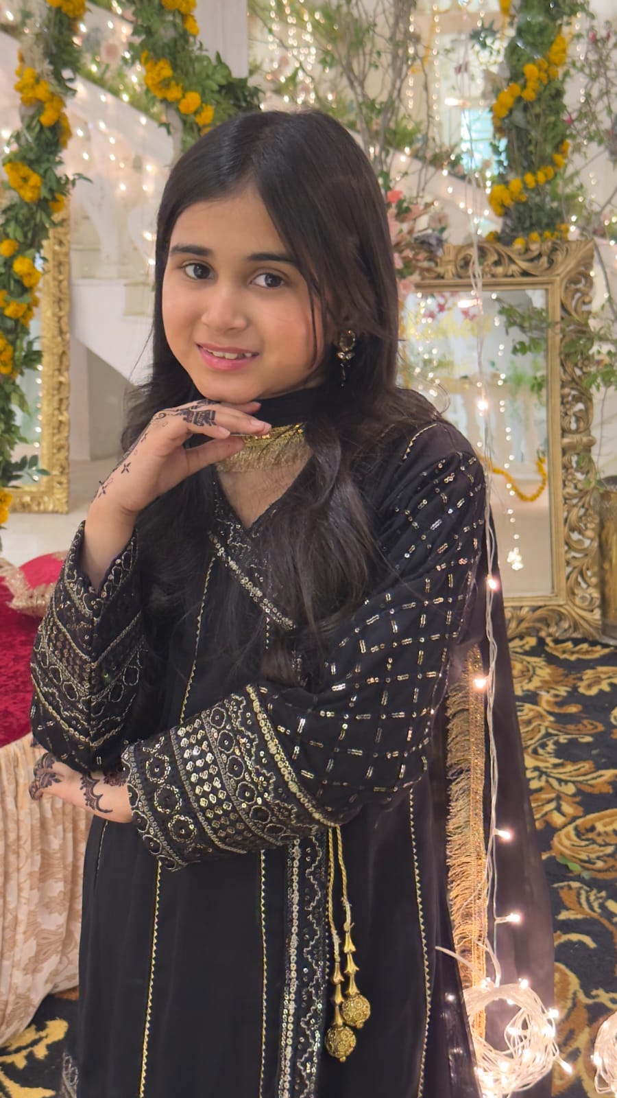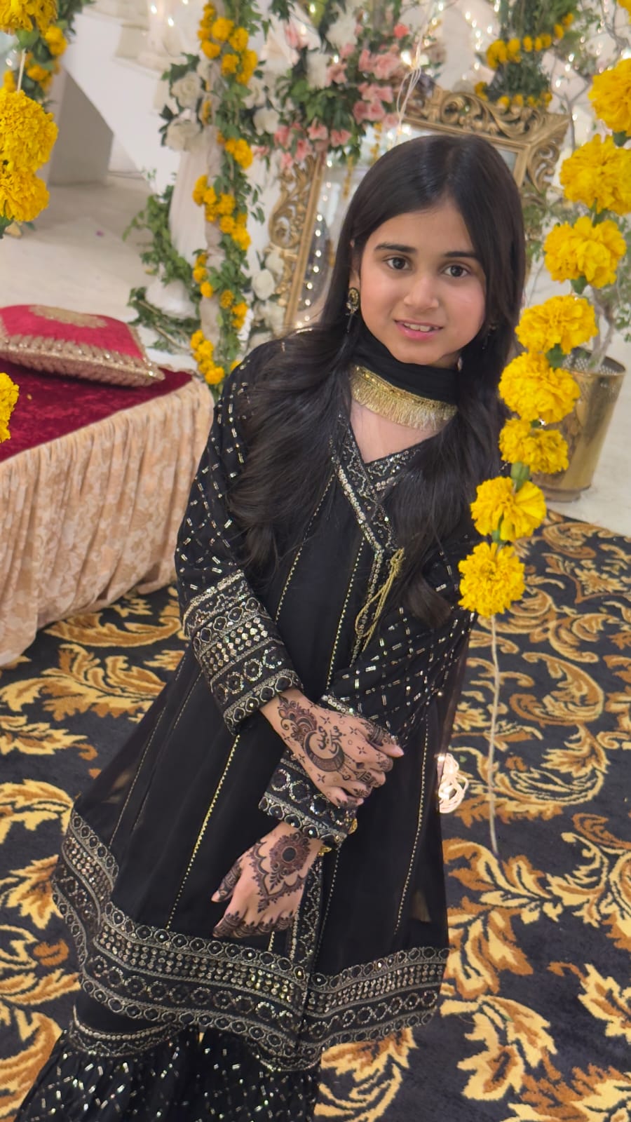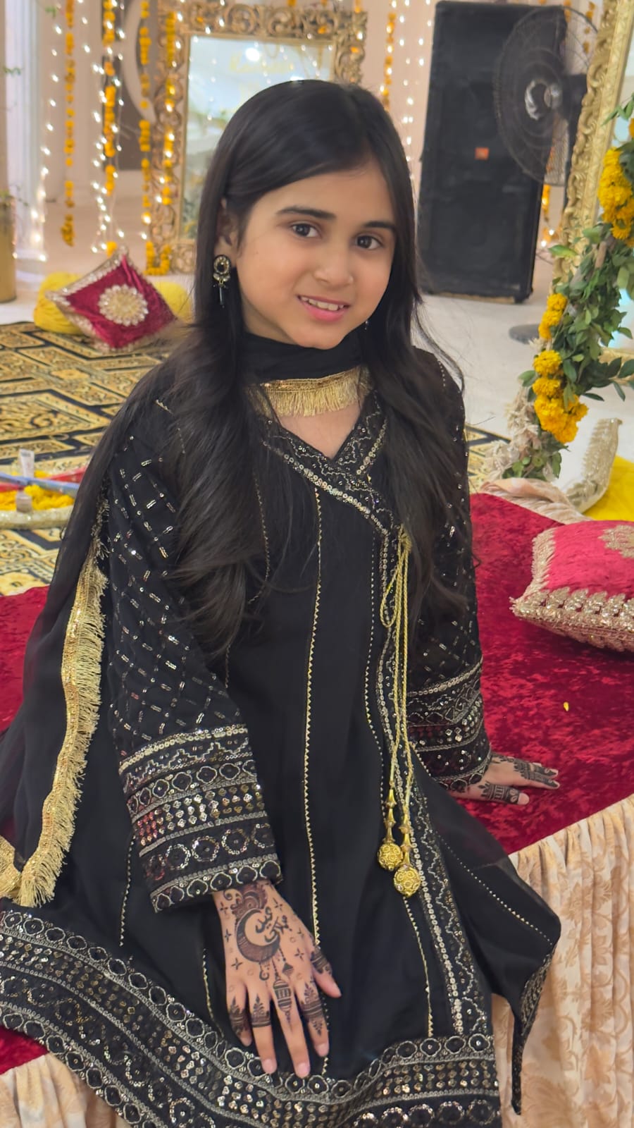 Fabric: Chiffon Pattern: Fancy Sequence Embroidery Color: Black Design Cut: Angrakha and Gharara. (Dupatta Included) Chiffon Angrakha Style Shirt is adorned with exquisite sequence embroided Gharara is a testament to craftsmanship.