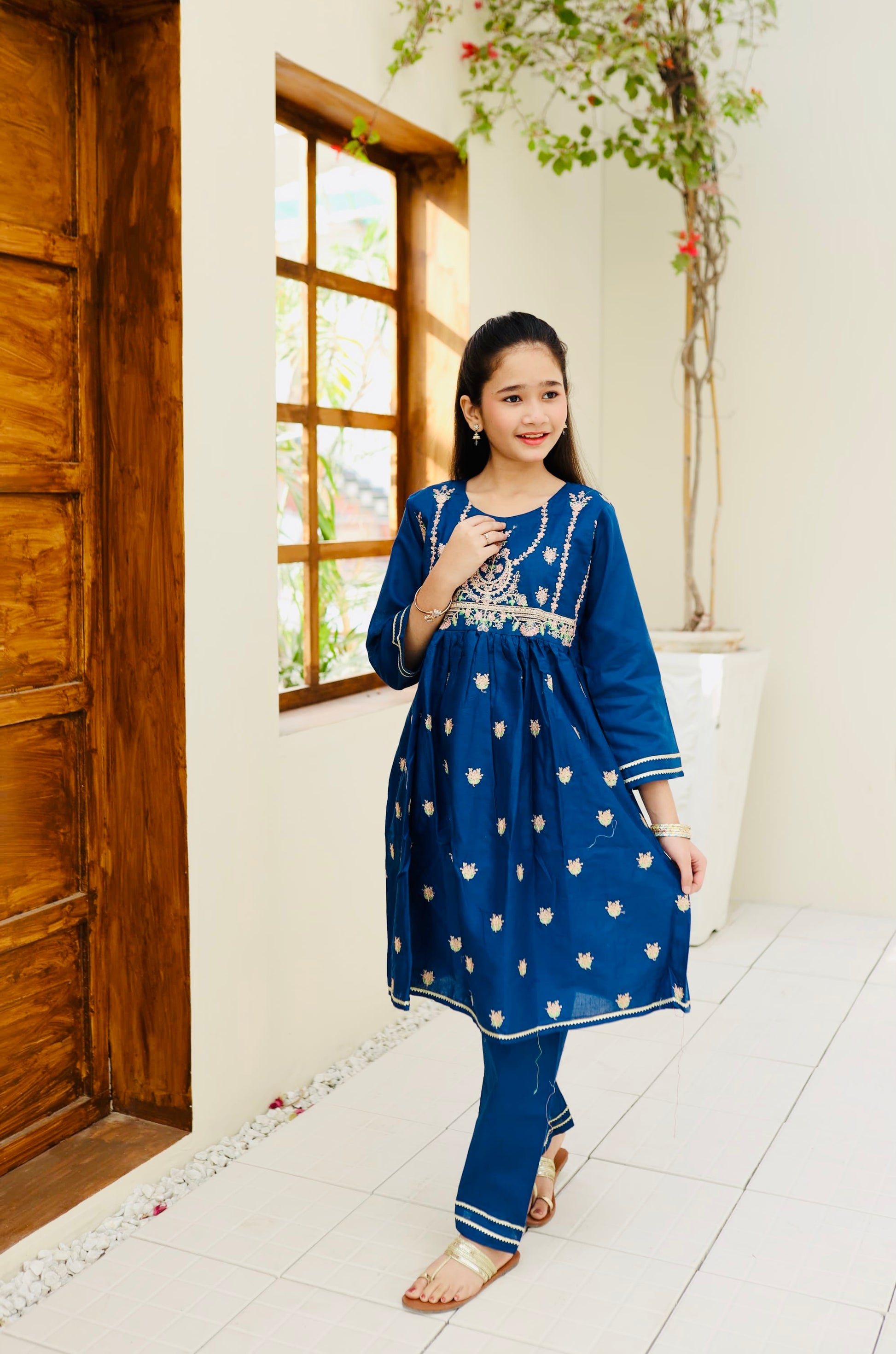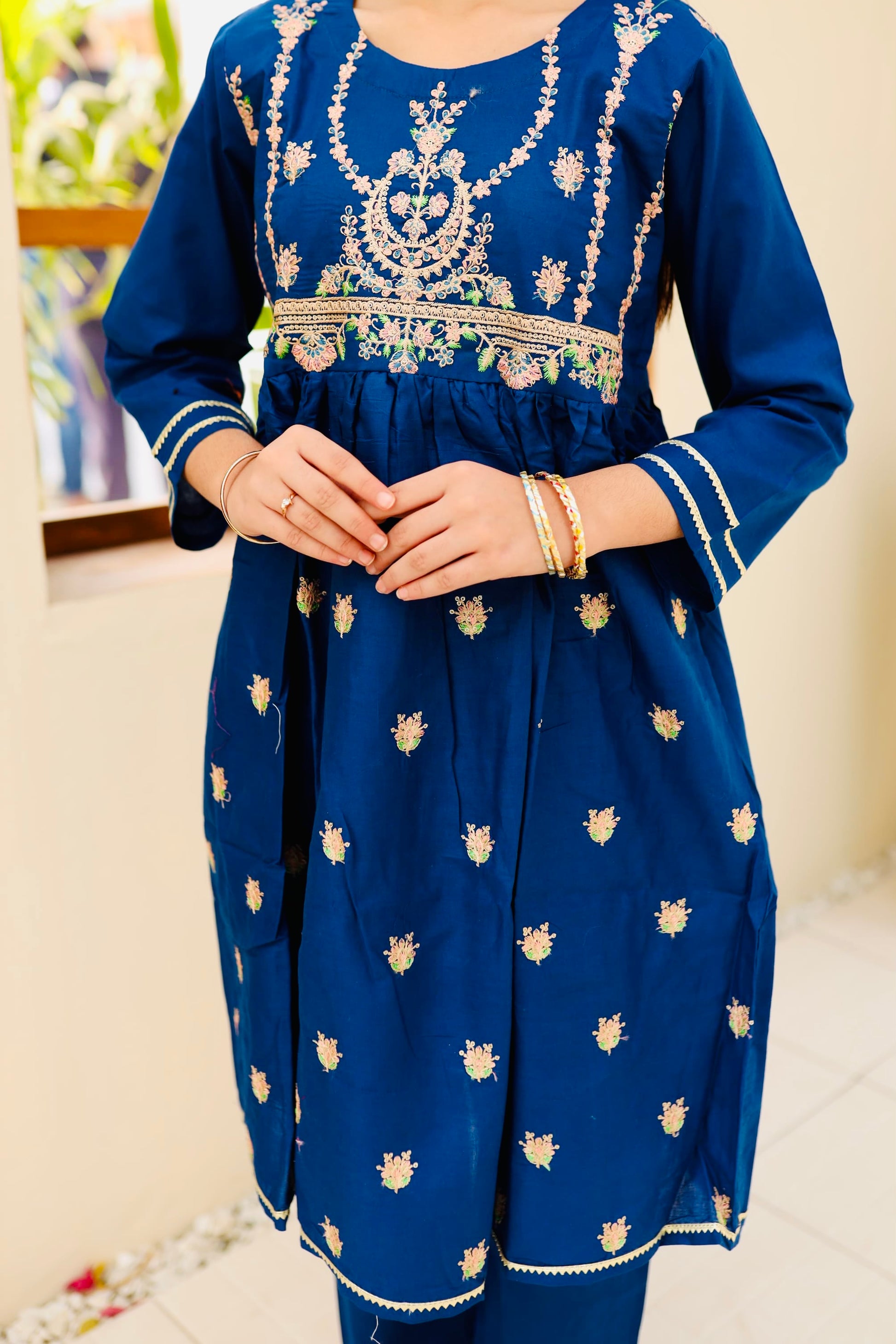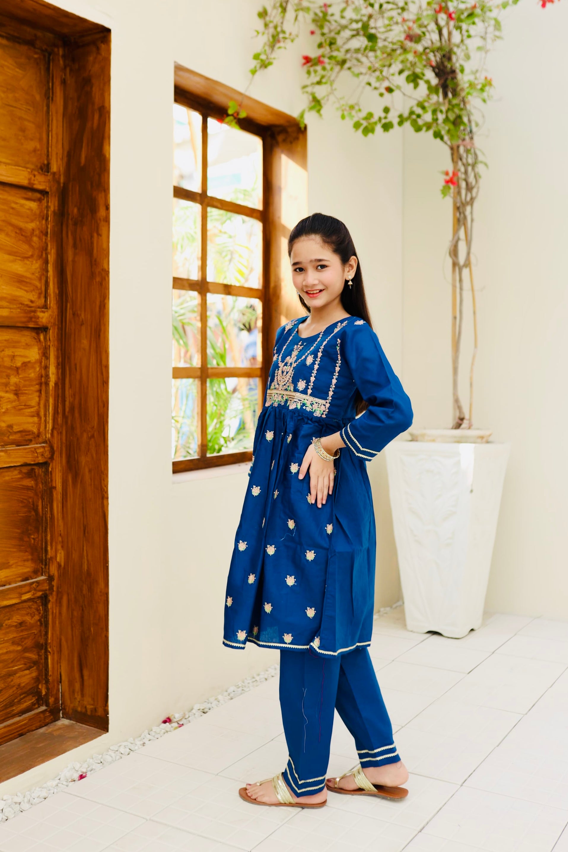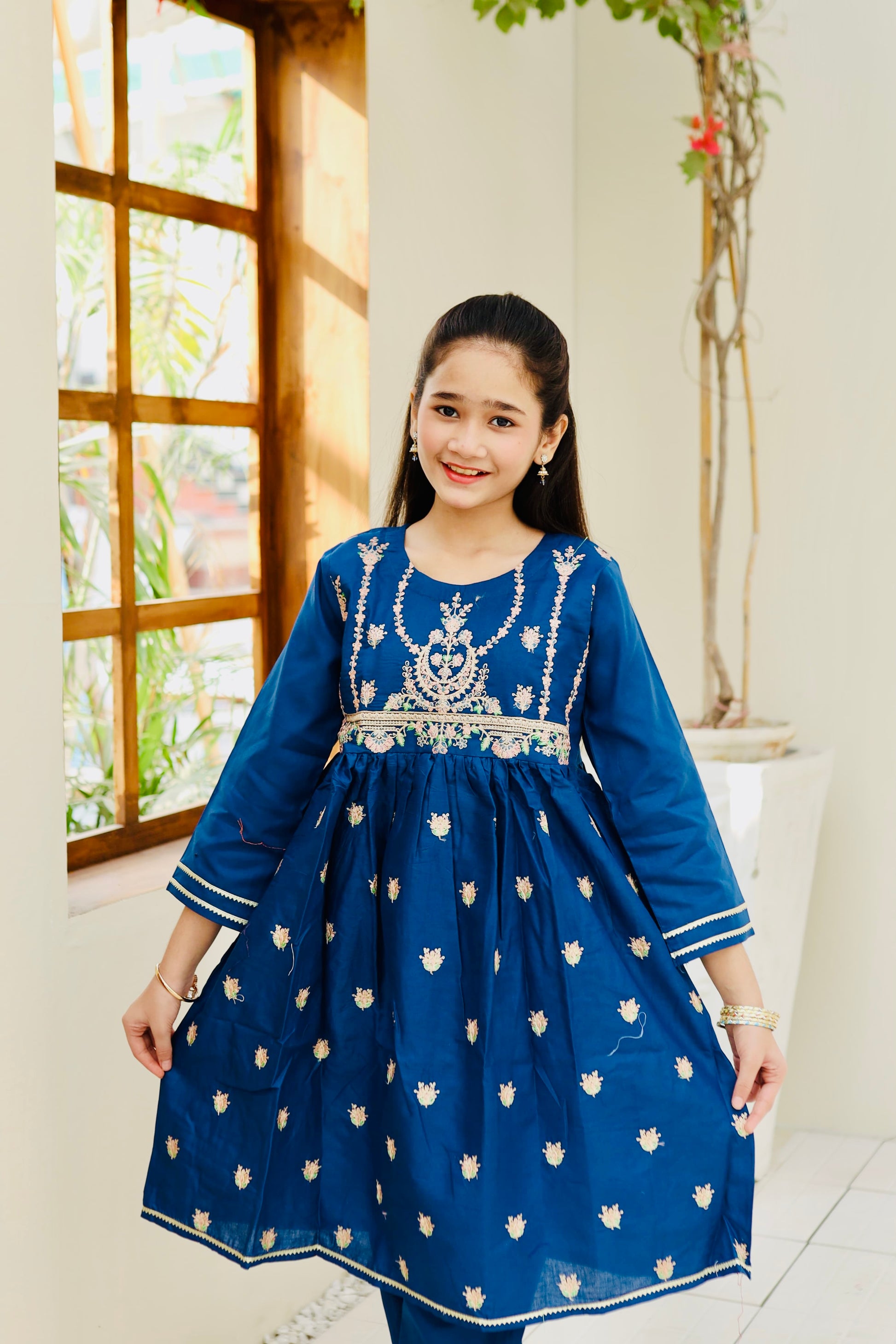 Design/Cut: 2-Pcs Short Frock and Straight Trouser