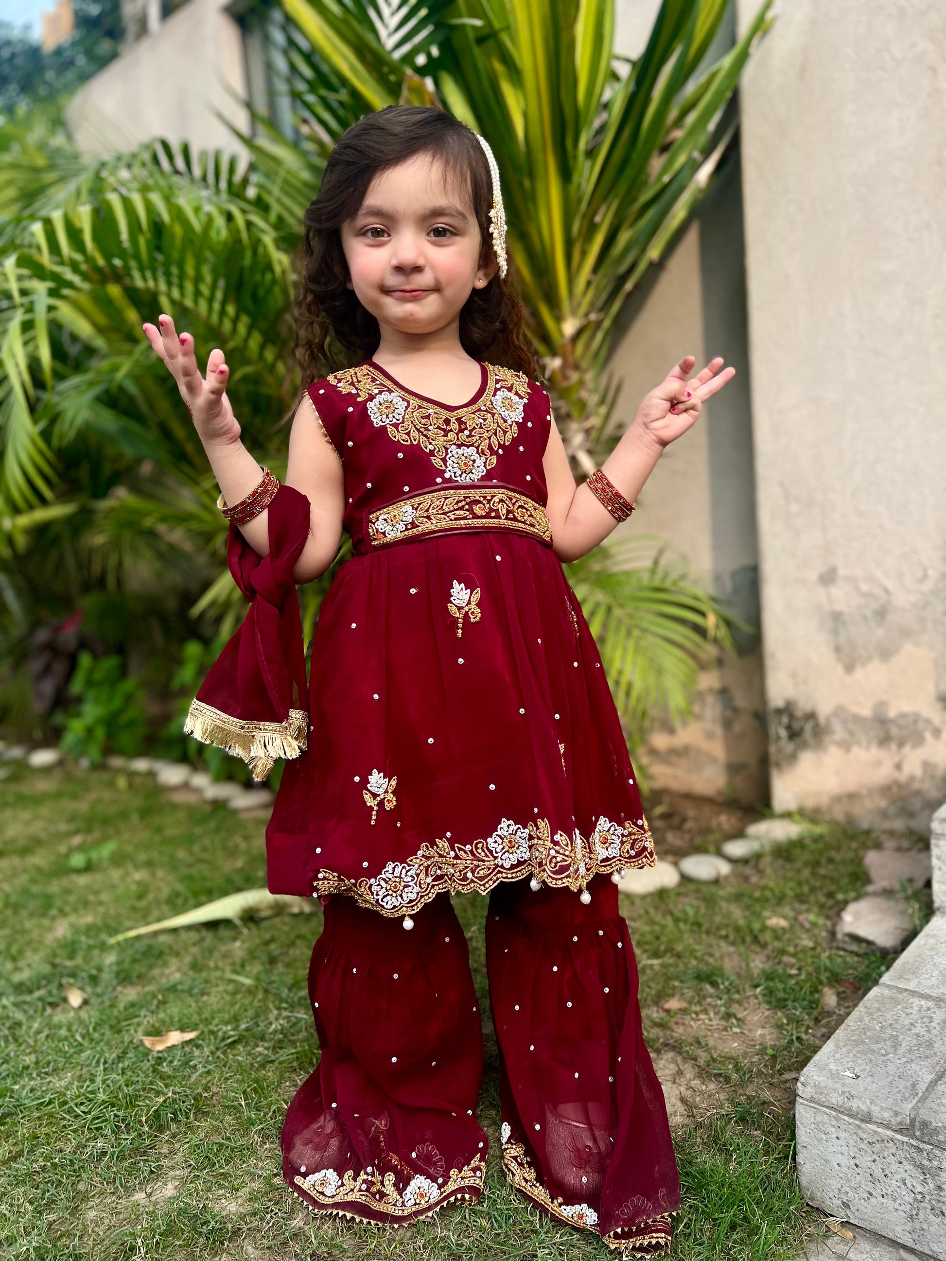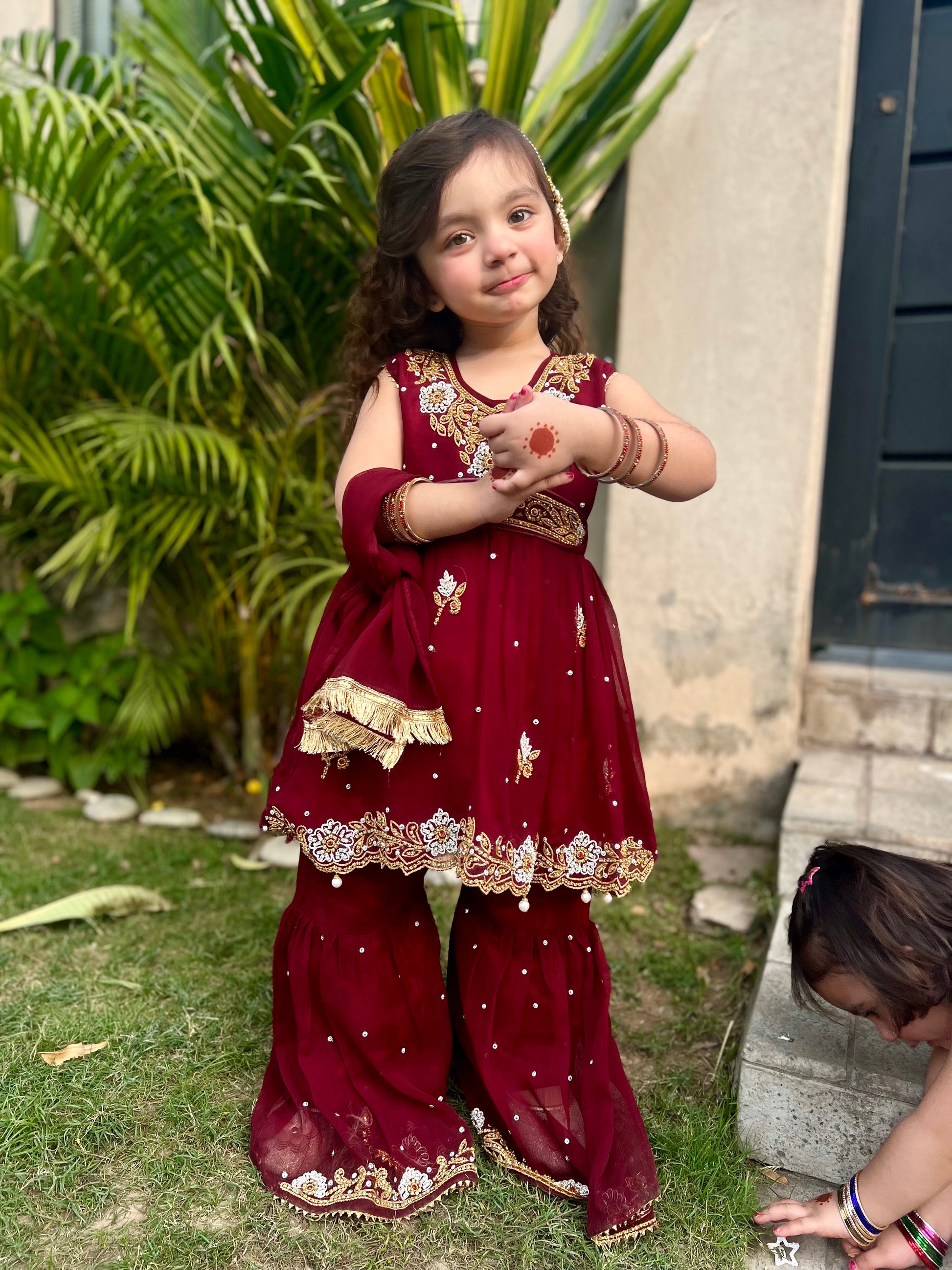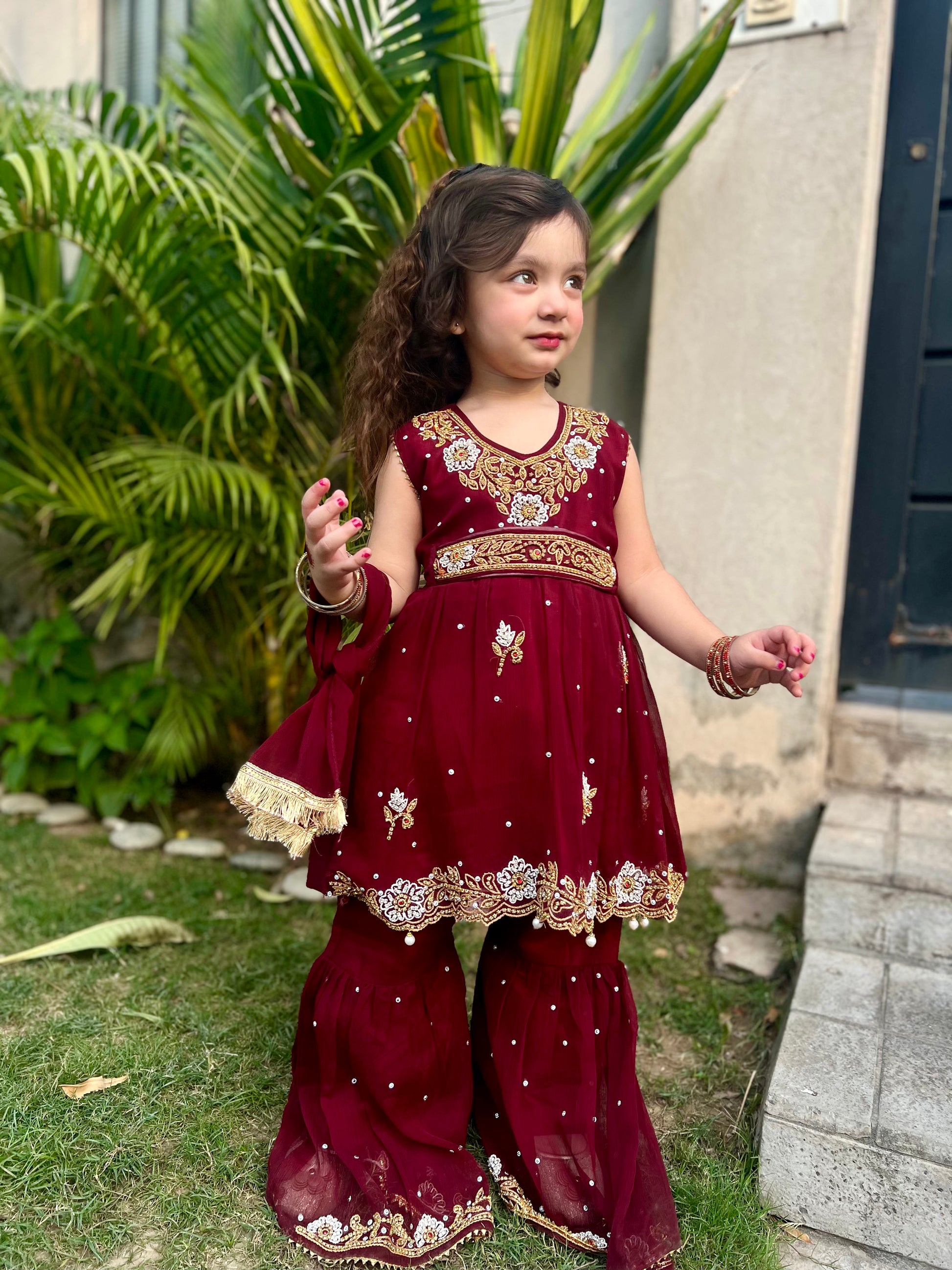 Design Cut: Frock and Gharara. (Dupatta Included)
