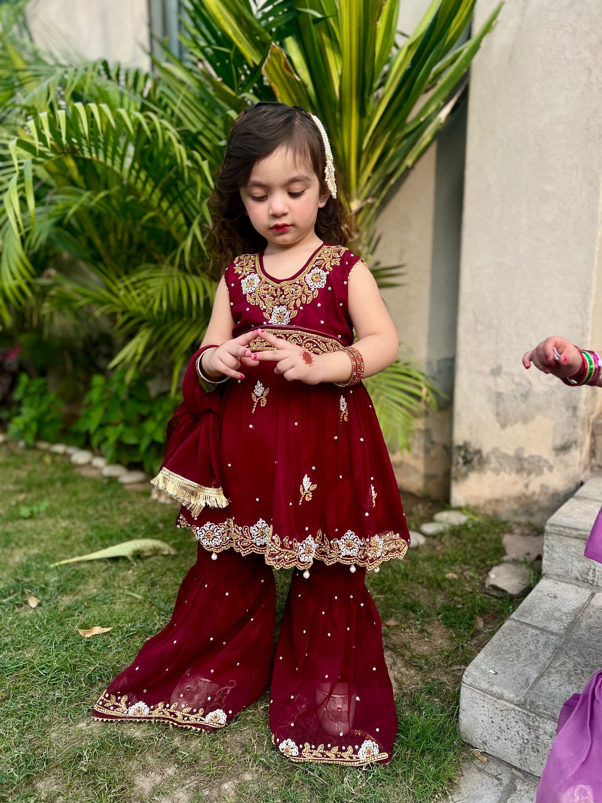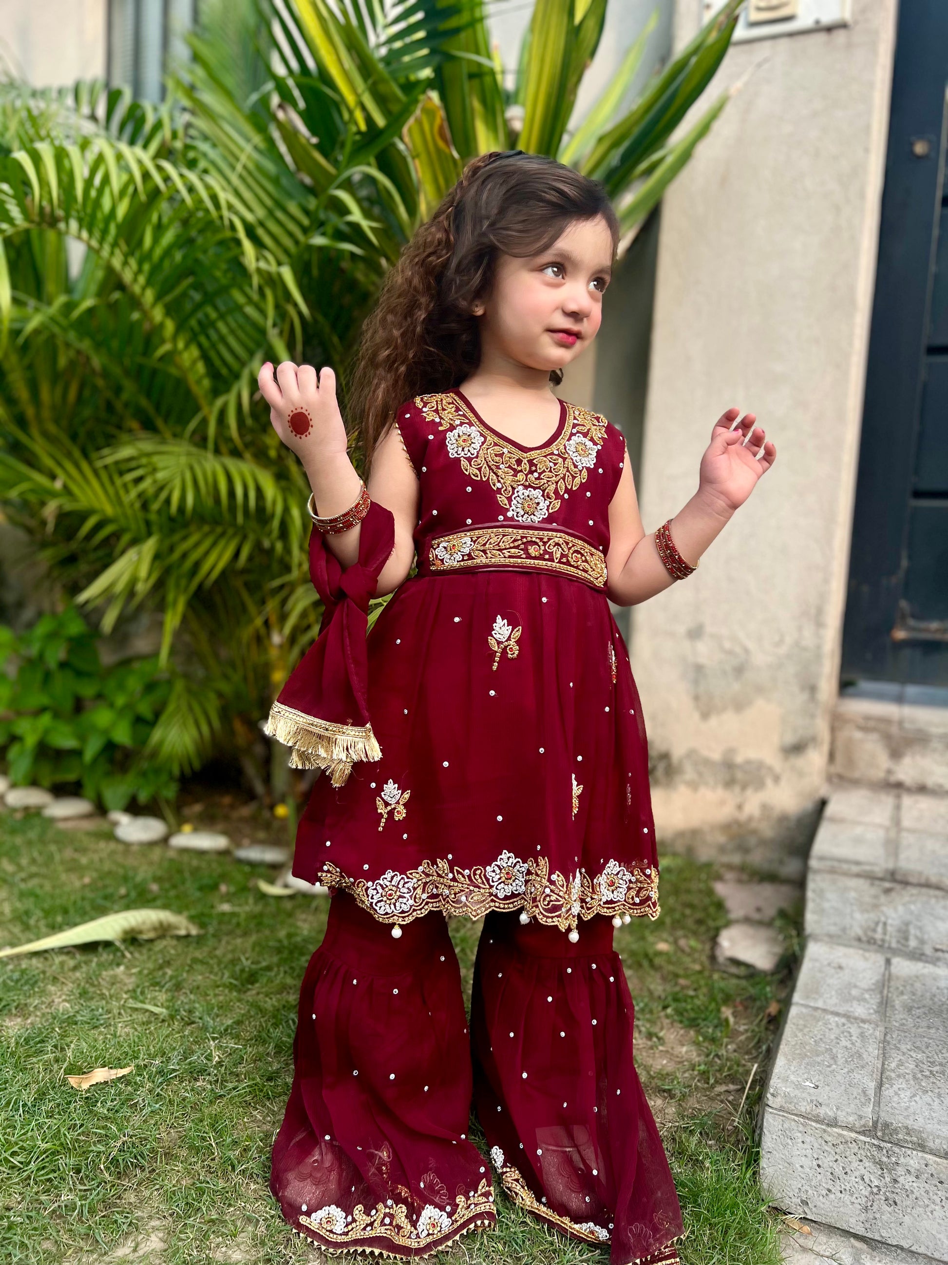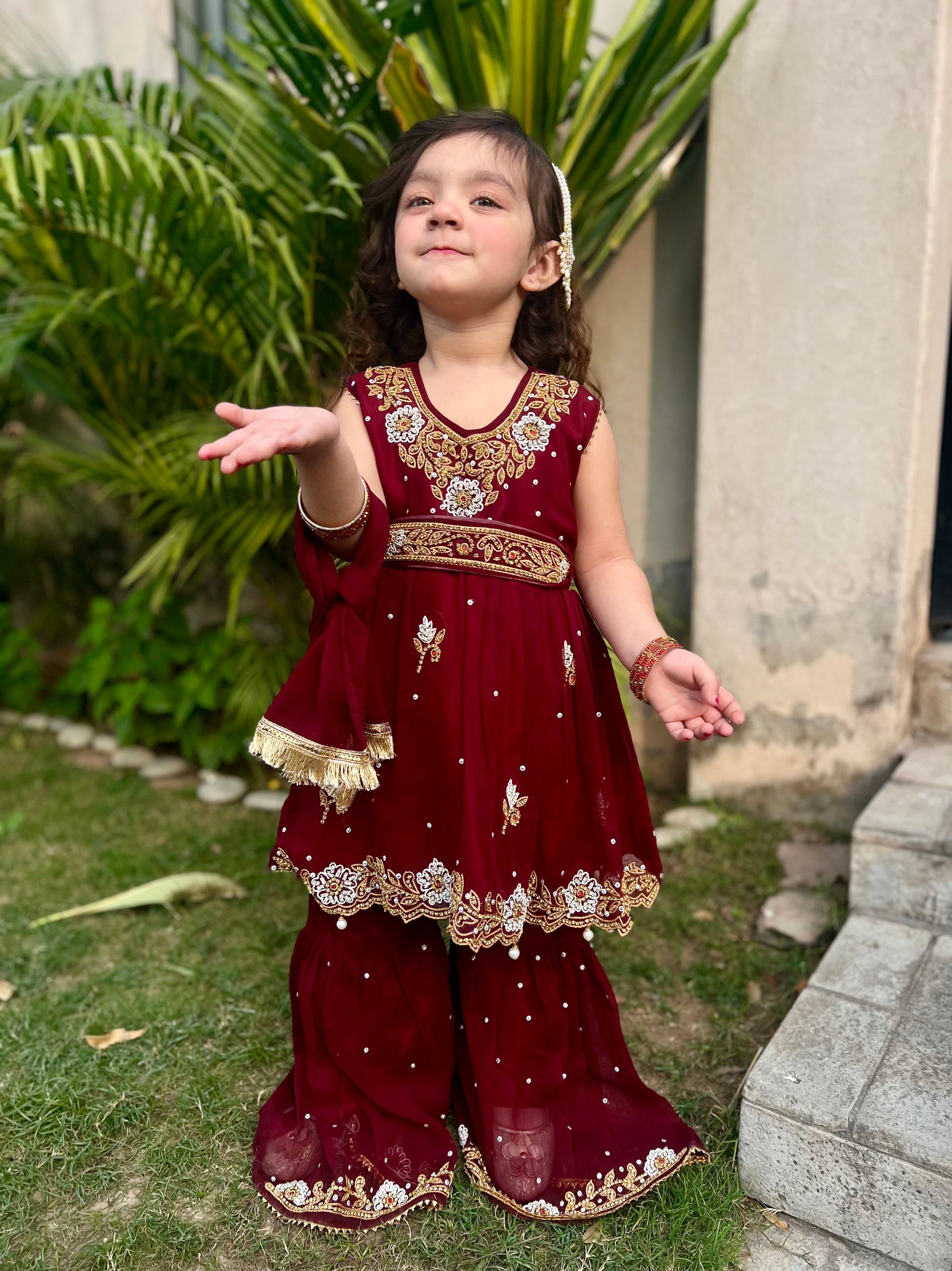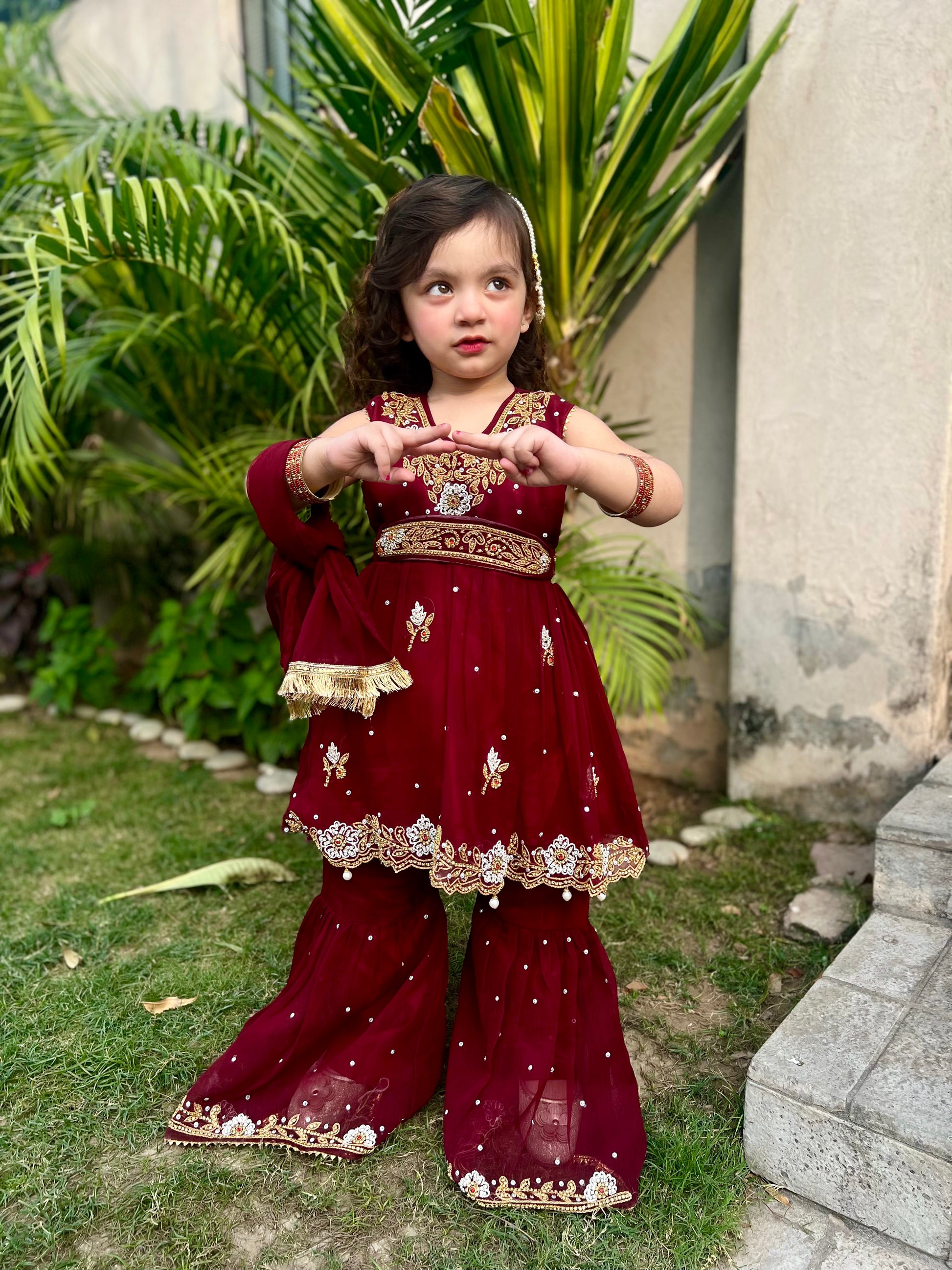 Design Cut: Frock and Gharara. (Dupatta Included)
