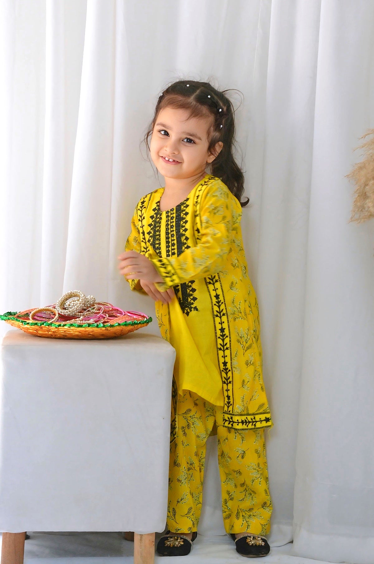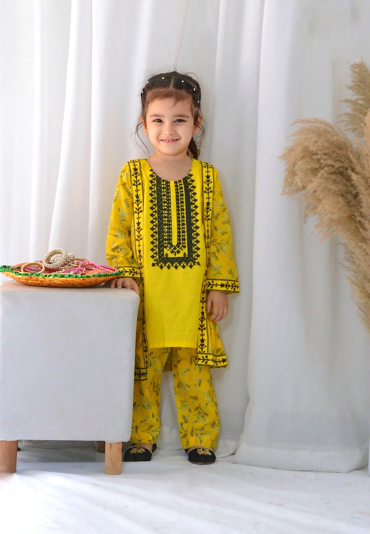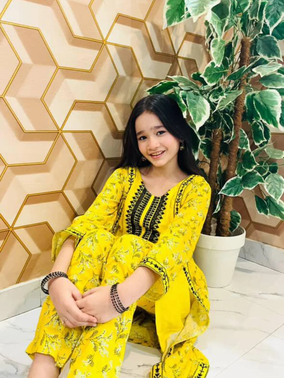 Fabric: Premium Lawn Pattern: Embroided and Digital printed. Color: Classic Yellow Design/Cut: Coat Style Enhance your child's wardrobe this summer with Khanak's Printed Lawn Stitched 2-Piece set with Coat Style.This stylish ensemble includes a digitally printed shirt and cozy trousers, making it the ideal choice for casual outings or fun-filled adventures. this fabric is designed for all seasons Coat Style Embroided
