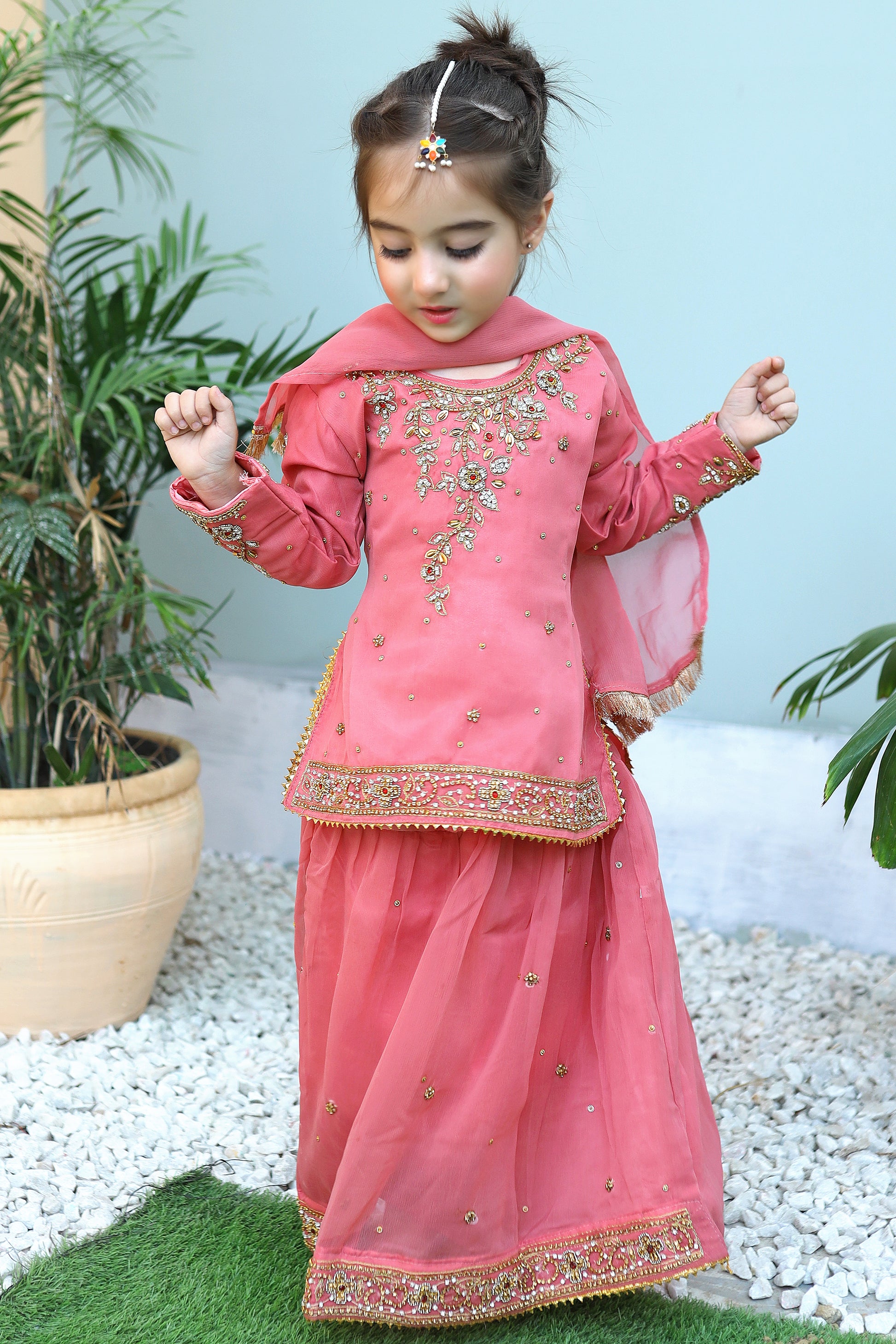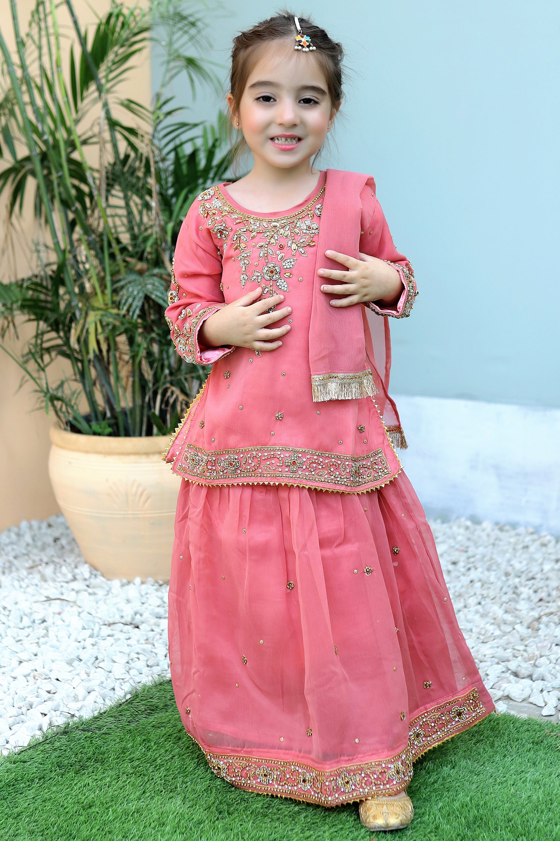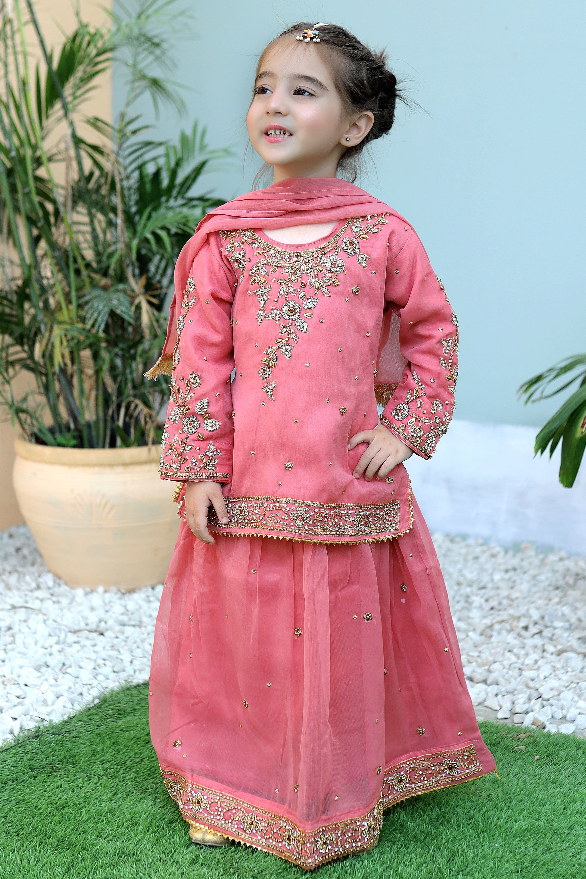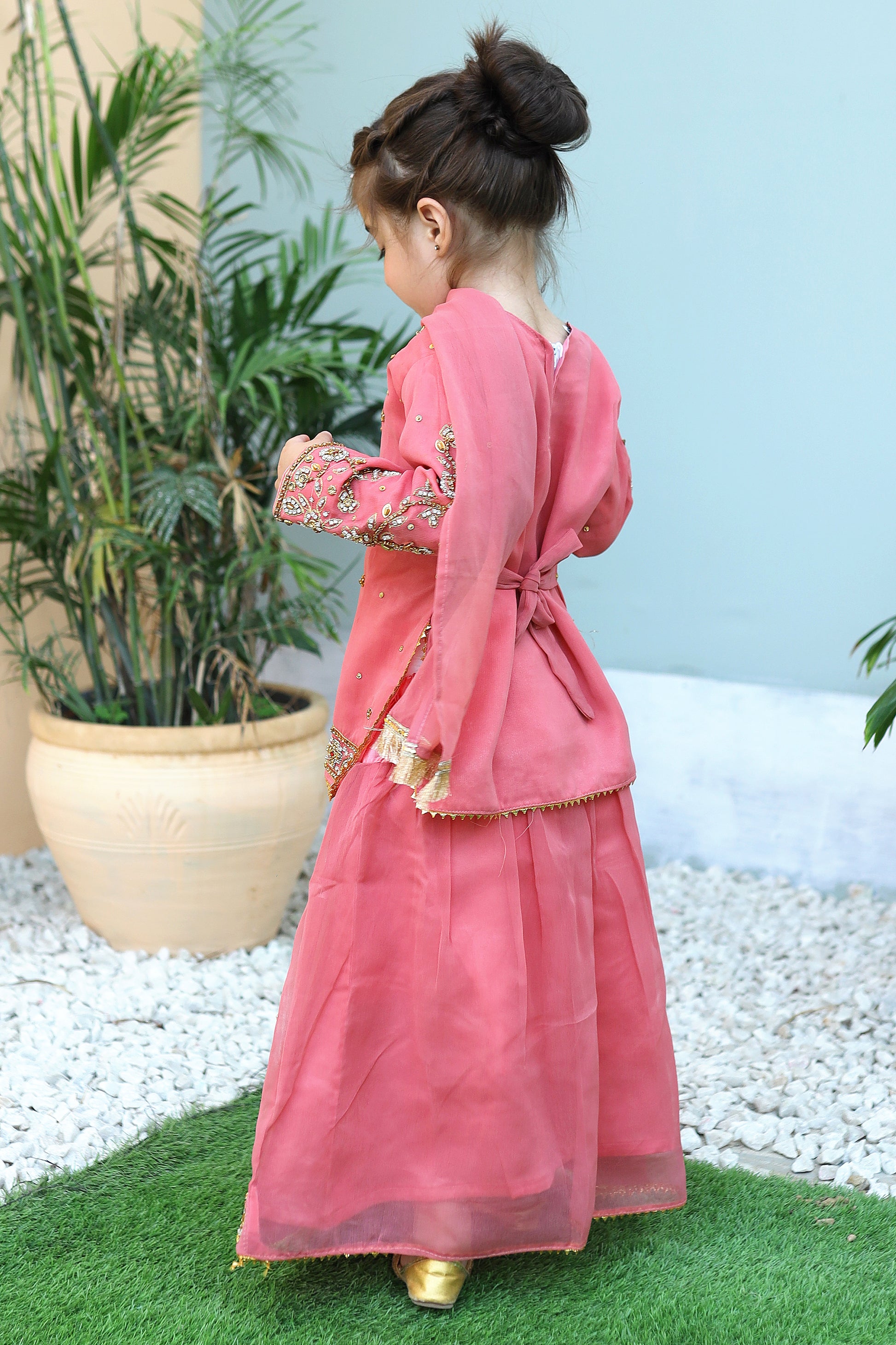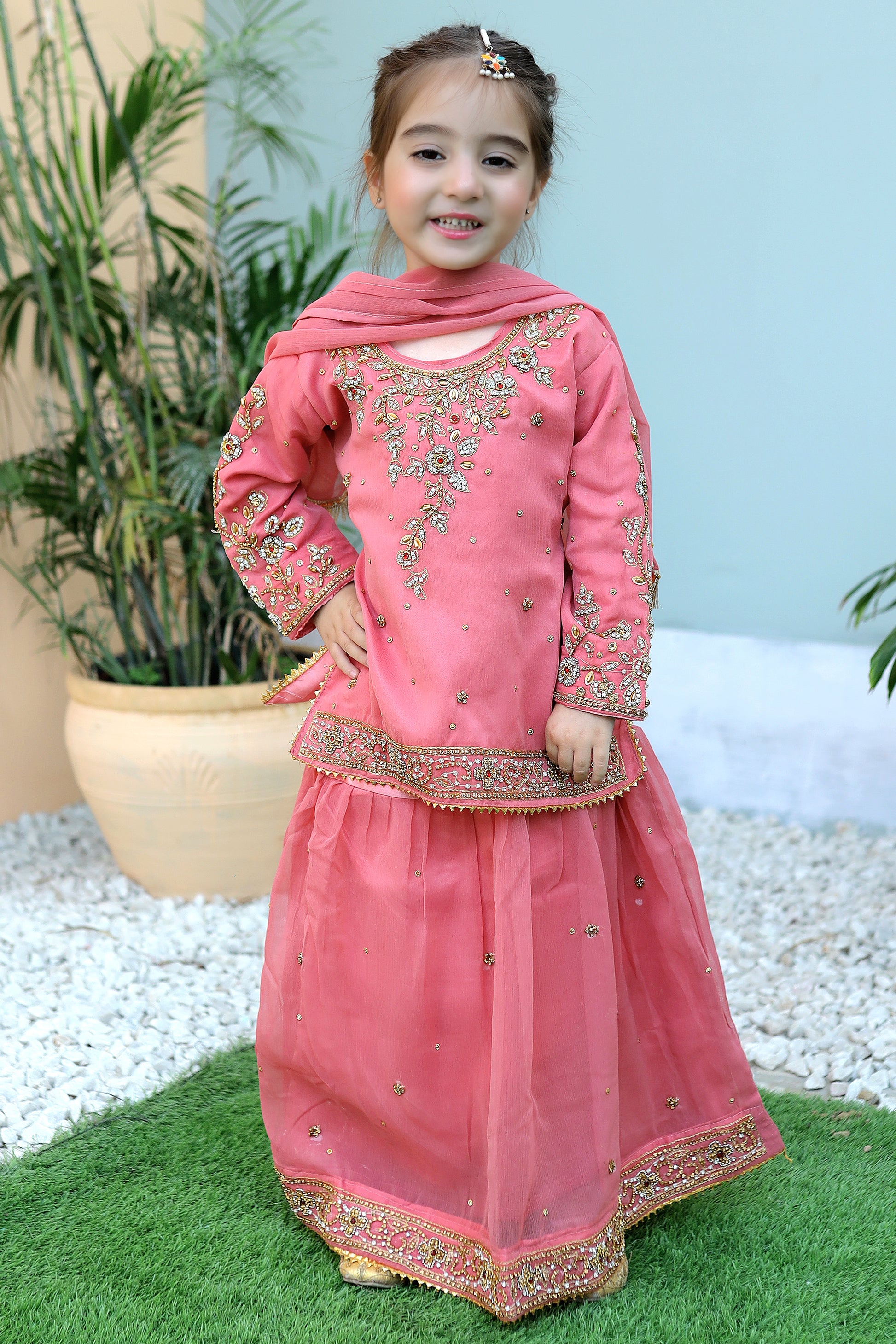 Fabric: Shiffon Pattern: Handwork Color: Pink Design Cut: Choli + Lehnga + Dupatta Premium Shiffon Choli is adorned with exquisite hand work Banarsi Style embroided Lehnga is a testament to craftsmanship.