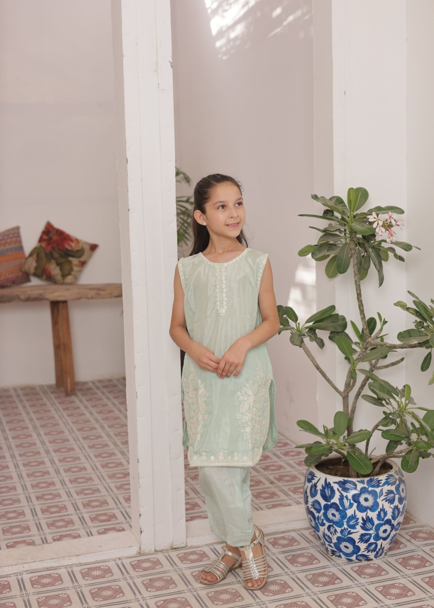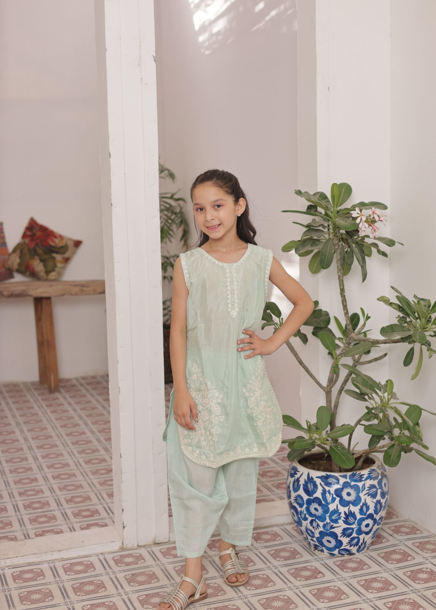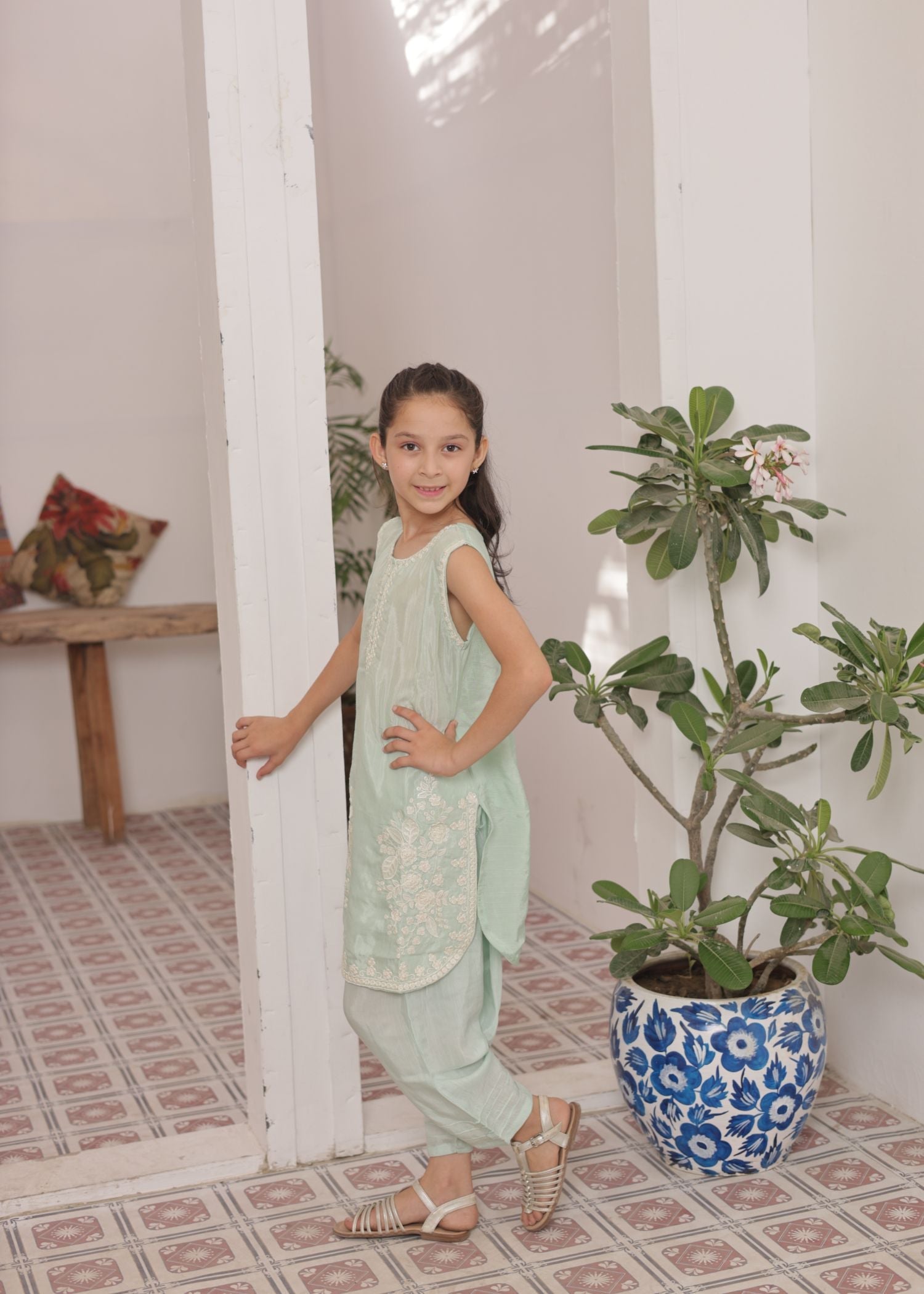 Ice Green 2pcs Raw Silk Suit-KST 053