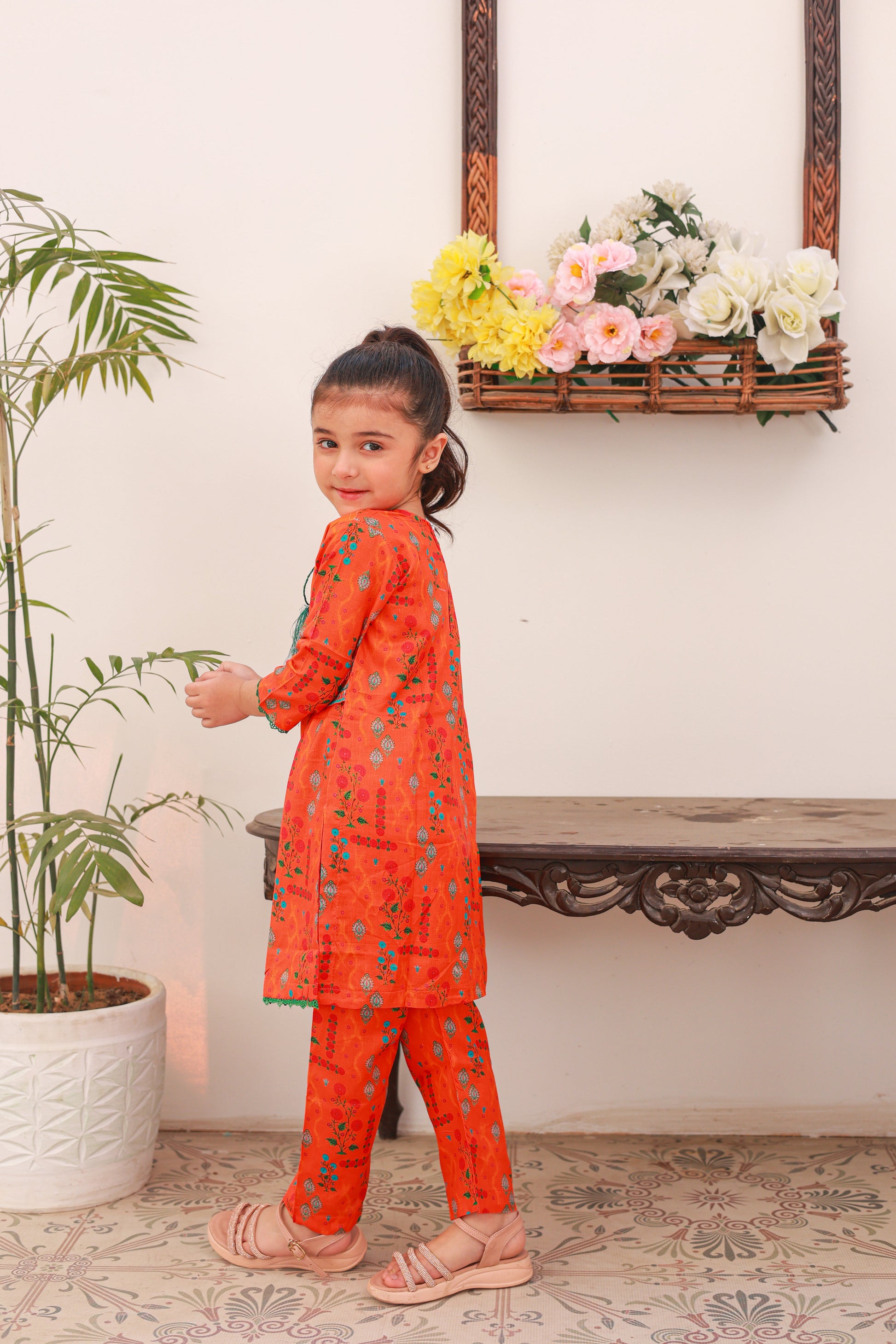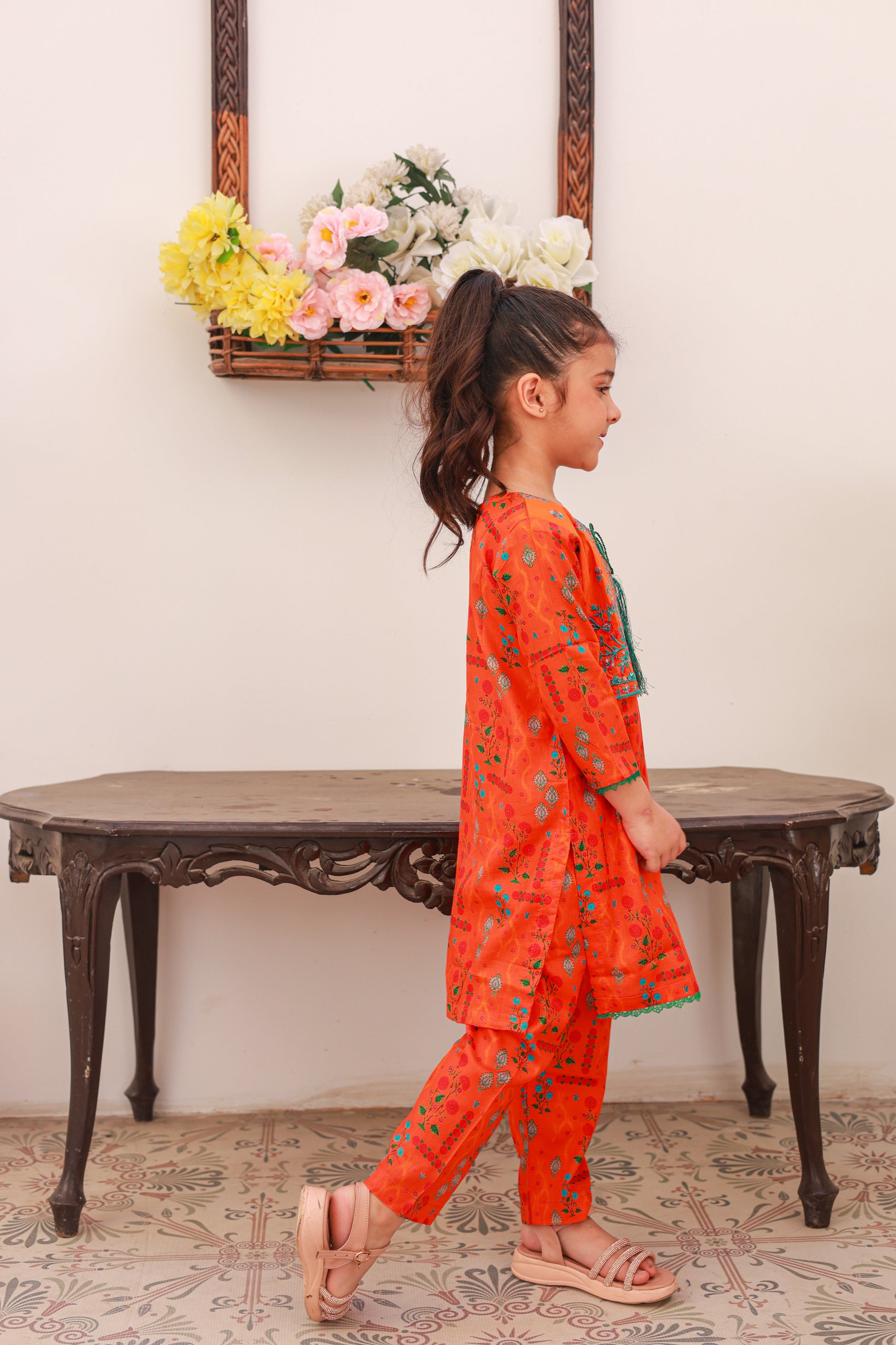Fabric: Premium Lawn Pattern: Embroidery and Digital print. Color: Orange Design/Cut: 2-pcs Koti style with trouser This product is designed for all seasons.
