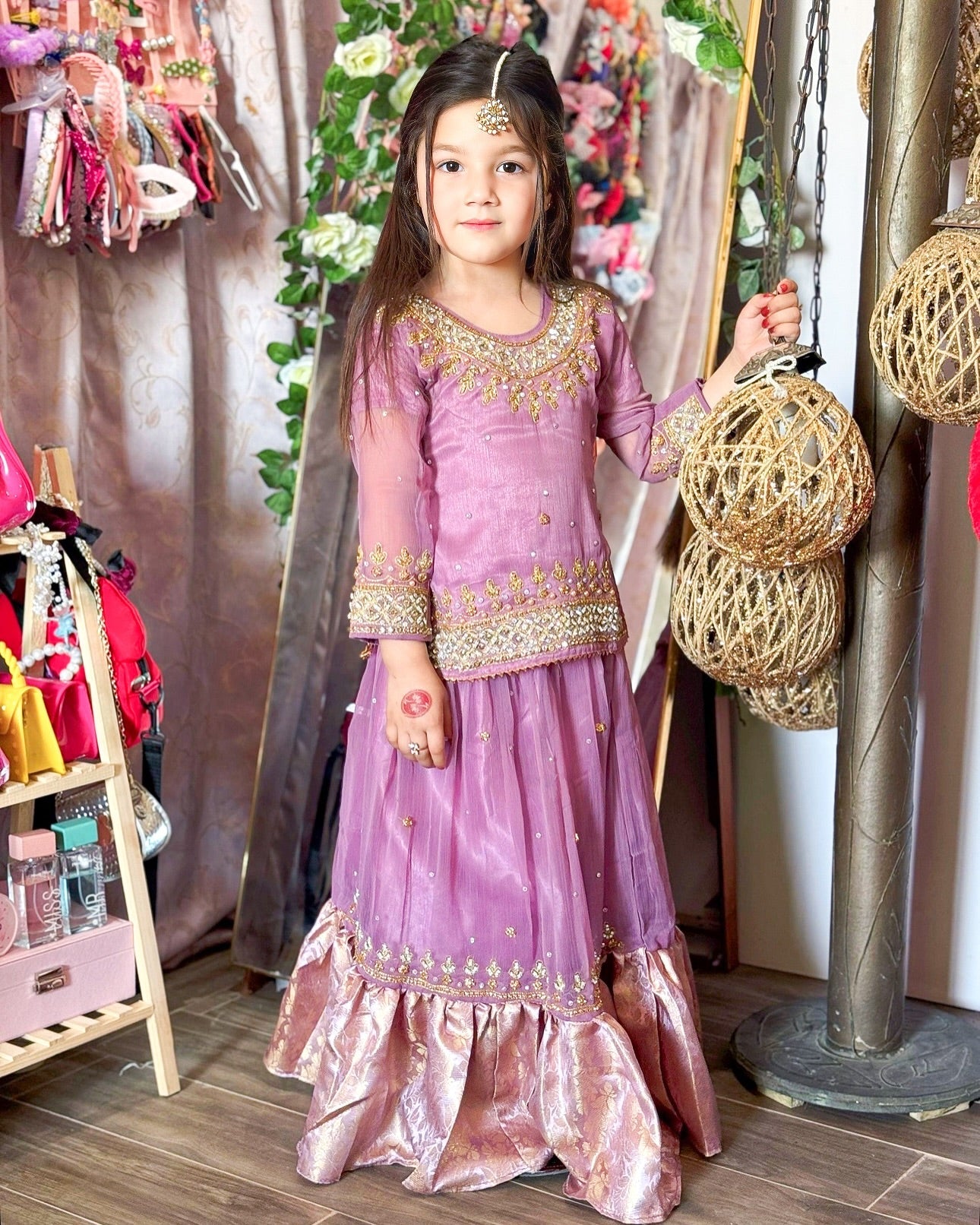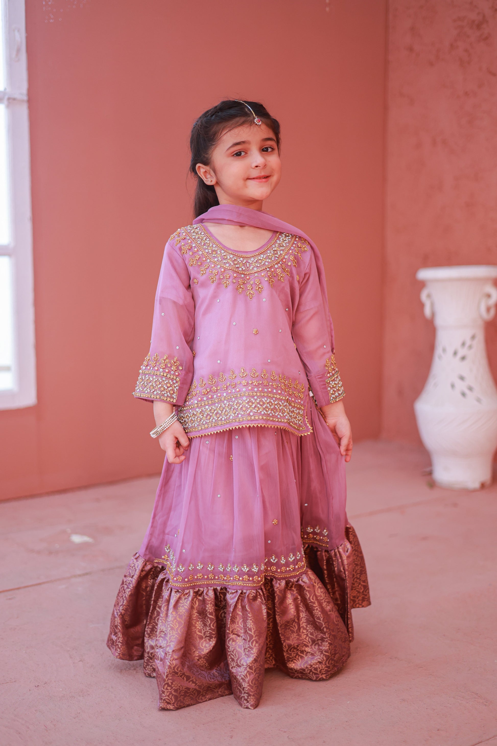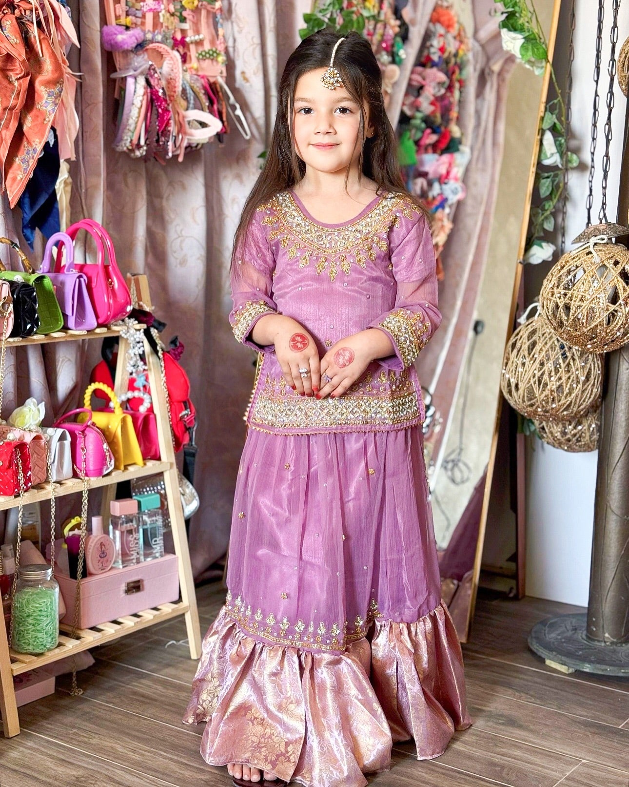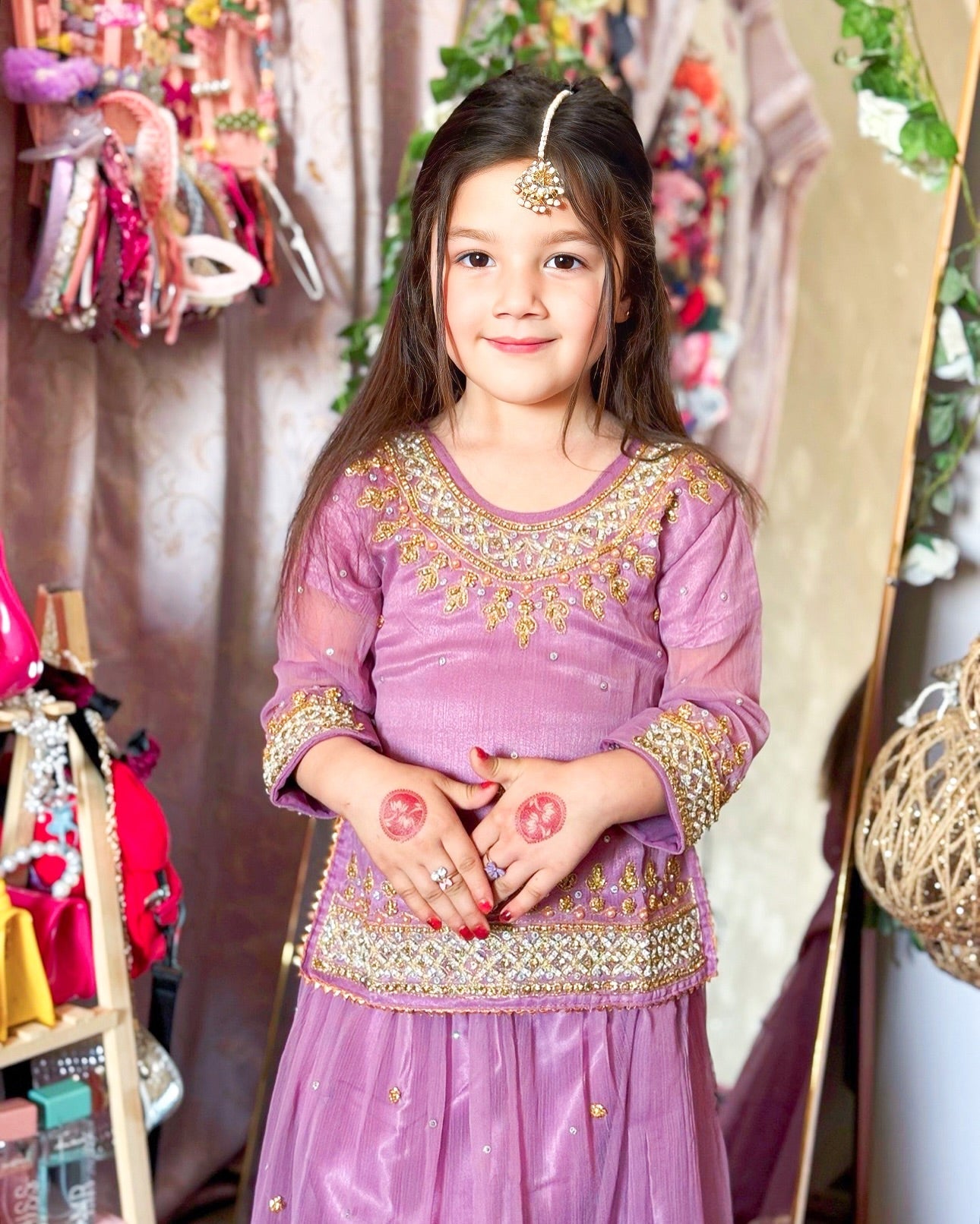 Fabric: chiffon Pattern: Handwork Color: muave Pink Design Cut: kurti + Lehnga + Dupatta Premium chiffon kurti is adorned with exquisite hand work Banarsi Style embroided Lehnga is a testament to craftsmanship.