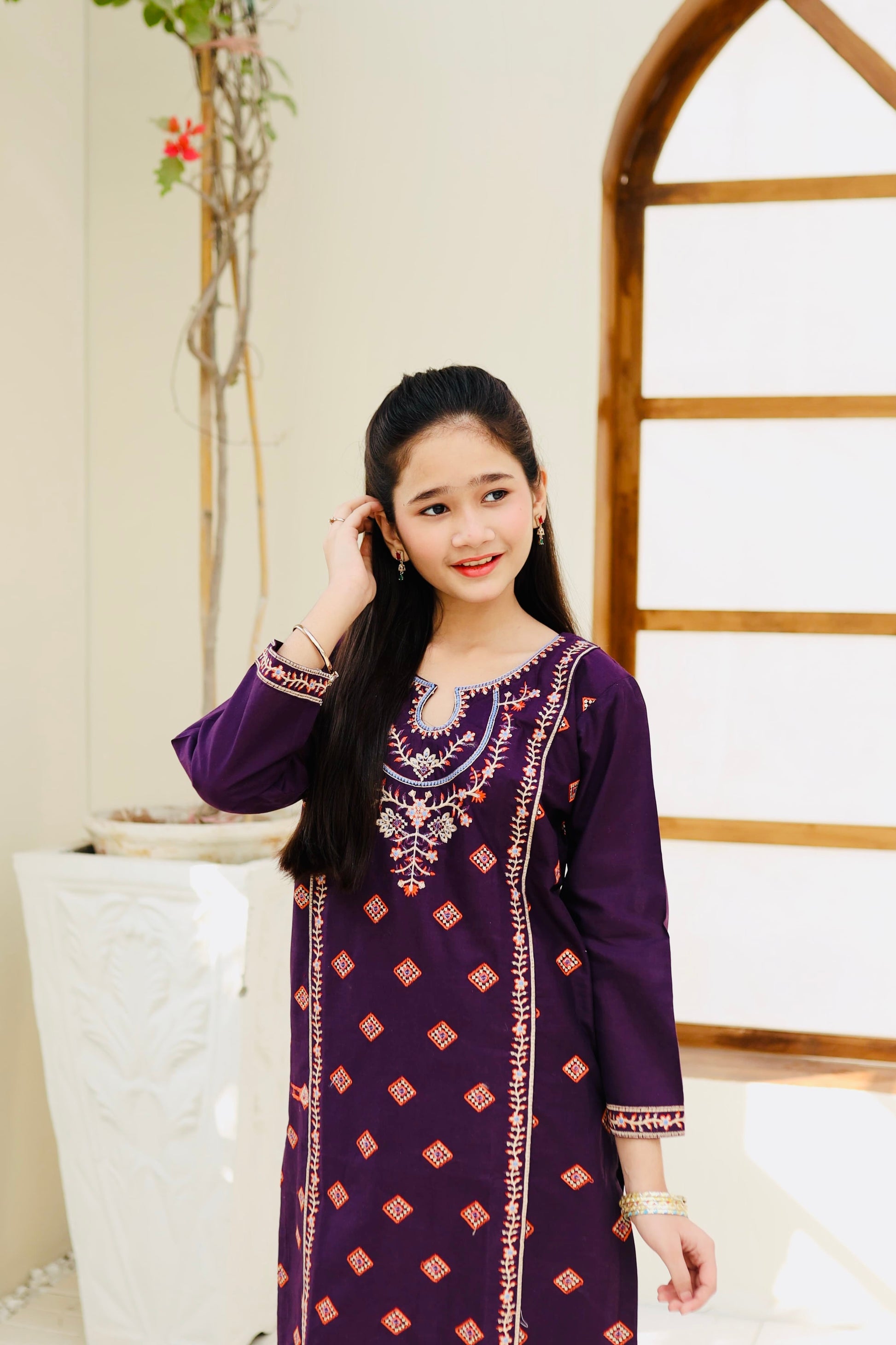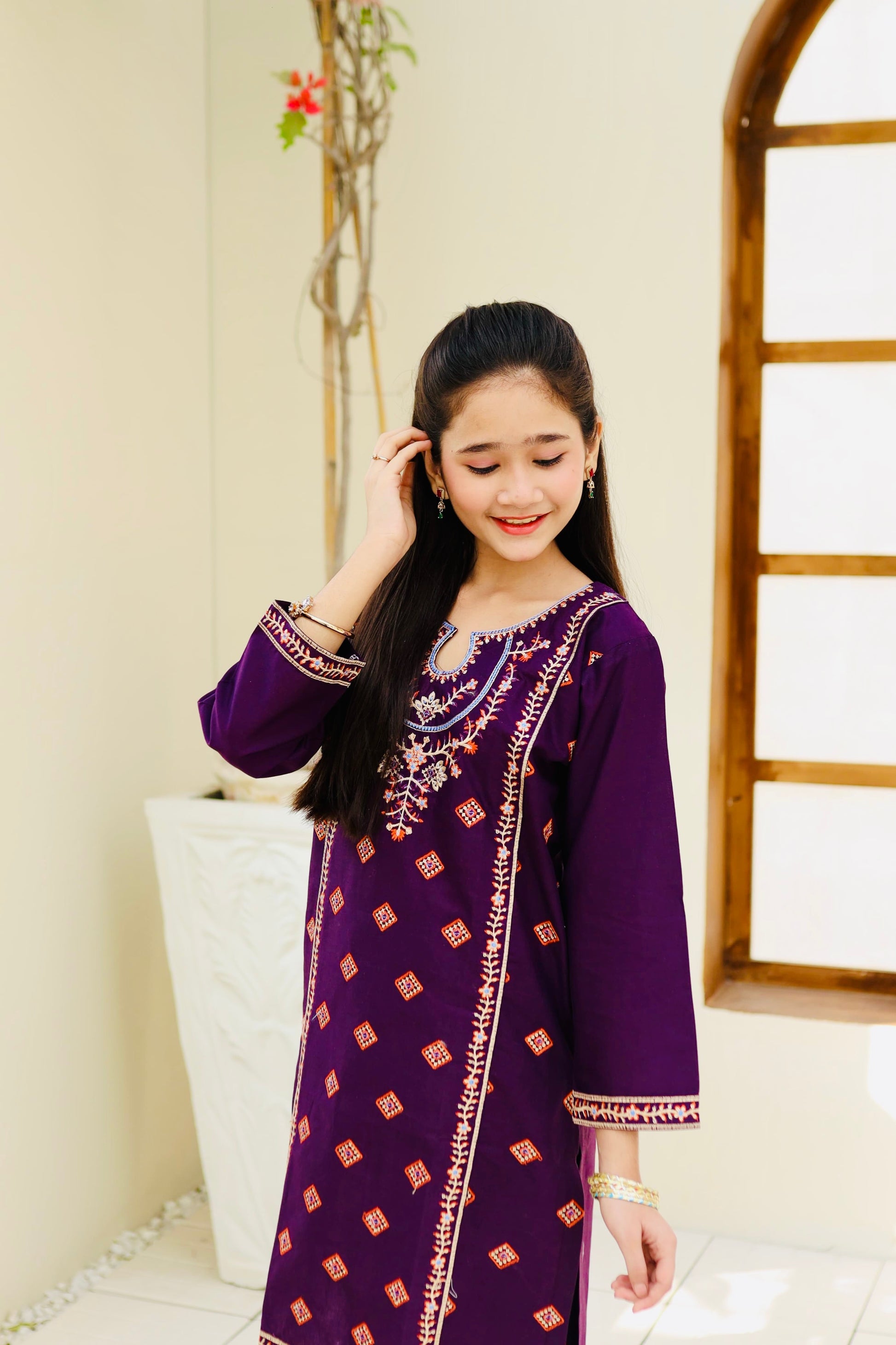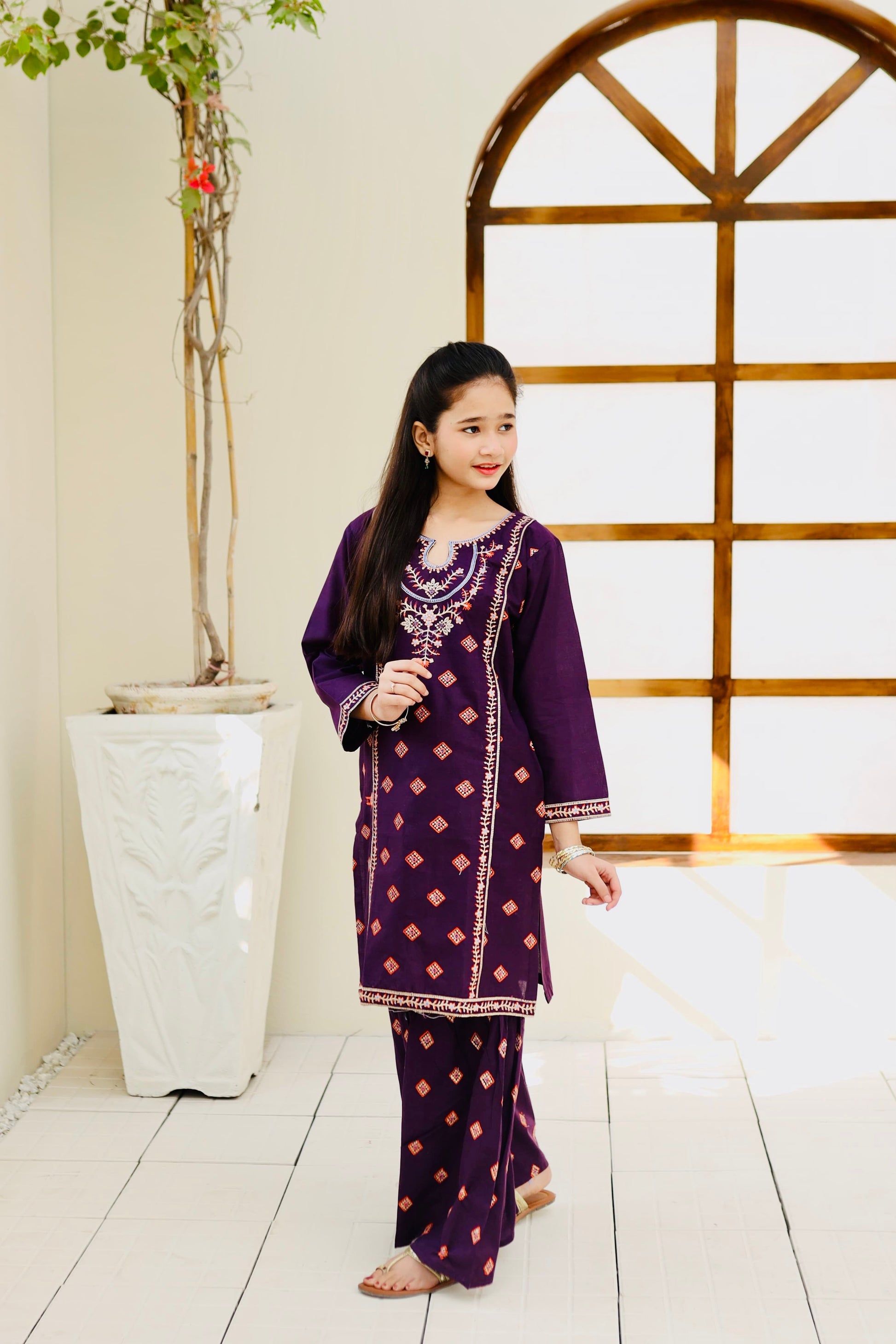 Fabric: Cotton Pattern:embroidered Color: Purple Design/Cut: 2-Pcs Straight Shirt and Gharara This product is designed for all seasons.