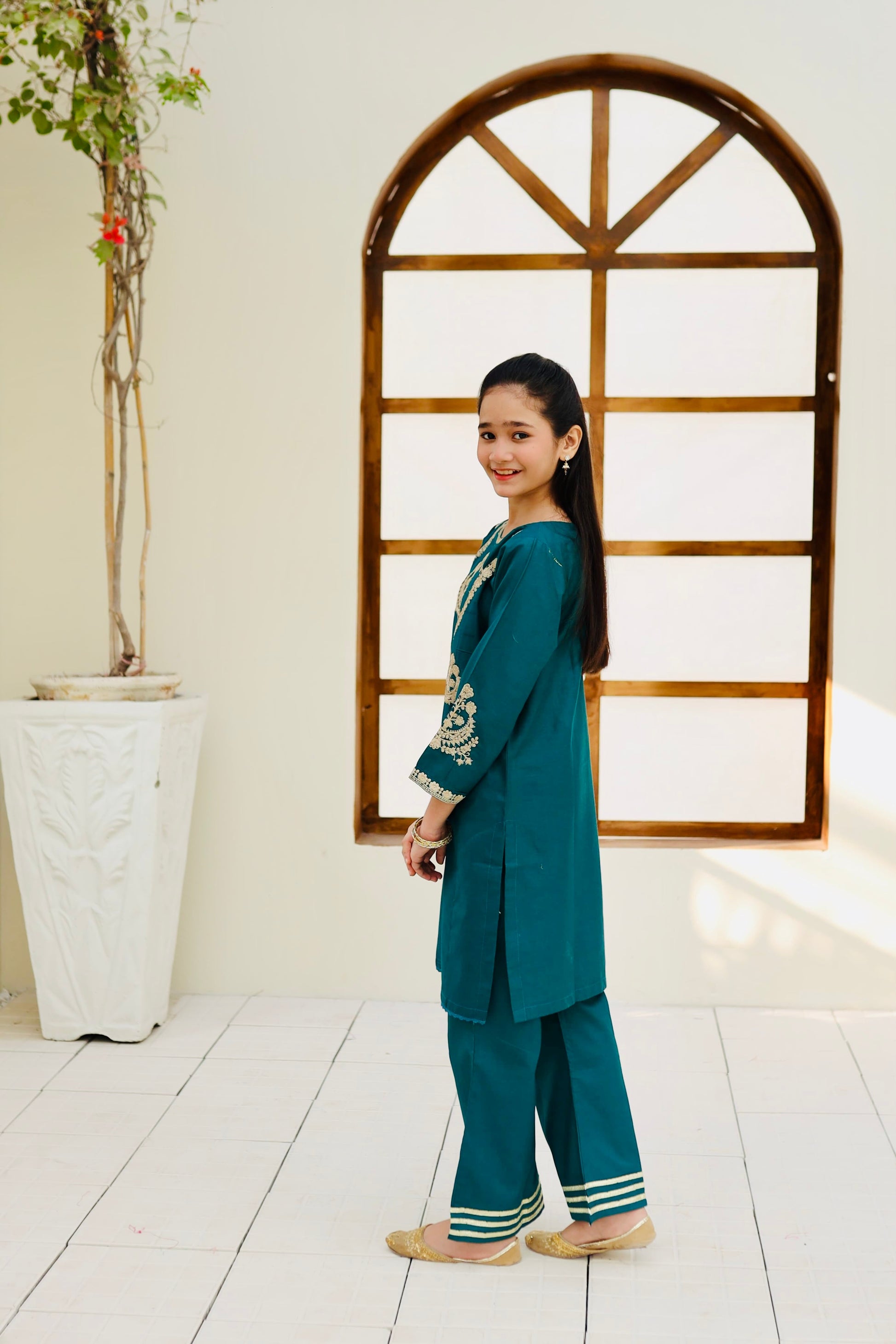 Fabric: Cotton Pattern:embroidered Color: Sea Green Design/Cut: 2-Pcs Straight Shirt and Flapper Trouser This product is designed for all seasons.