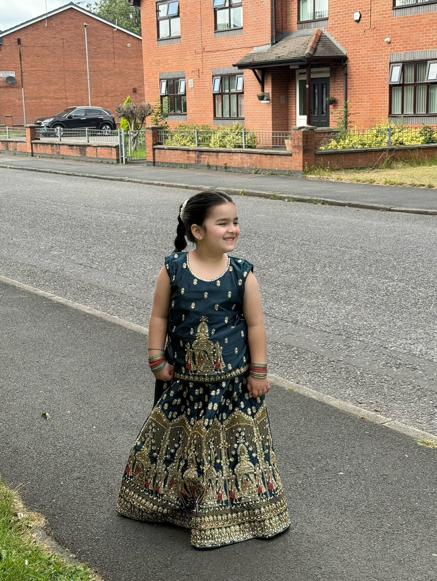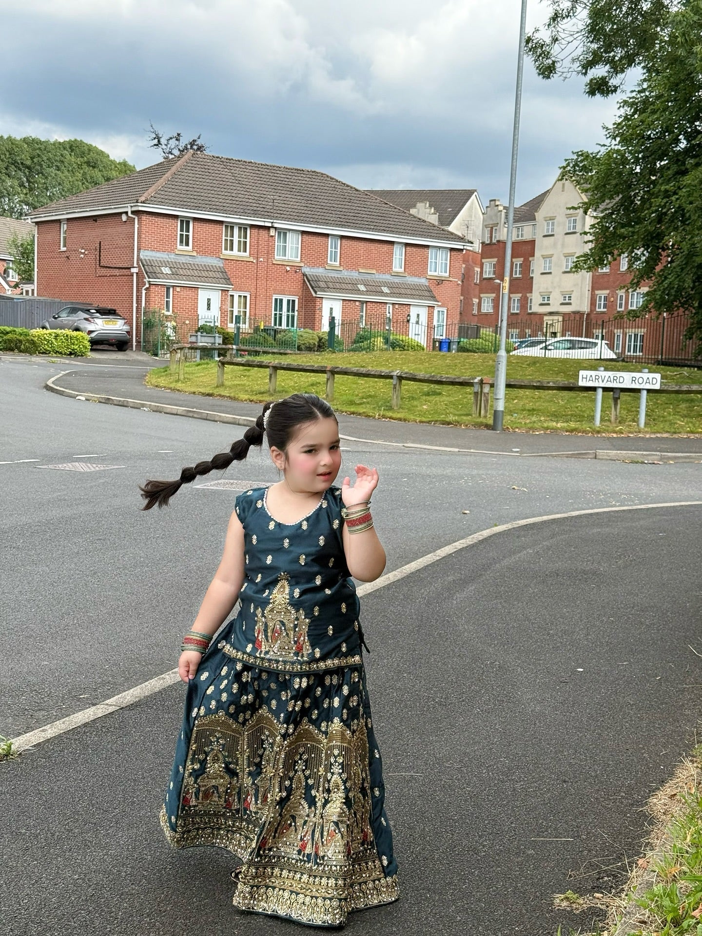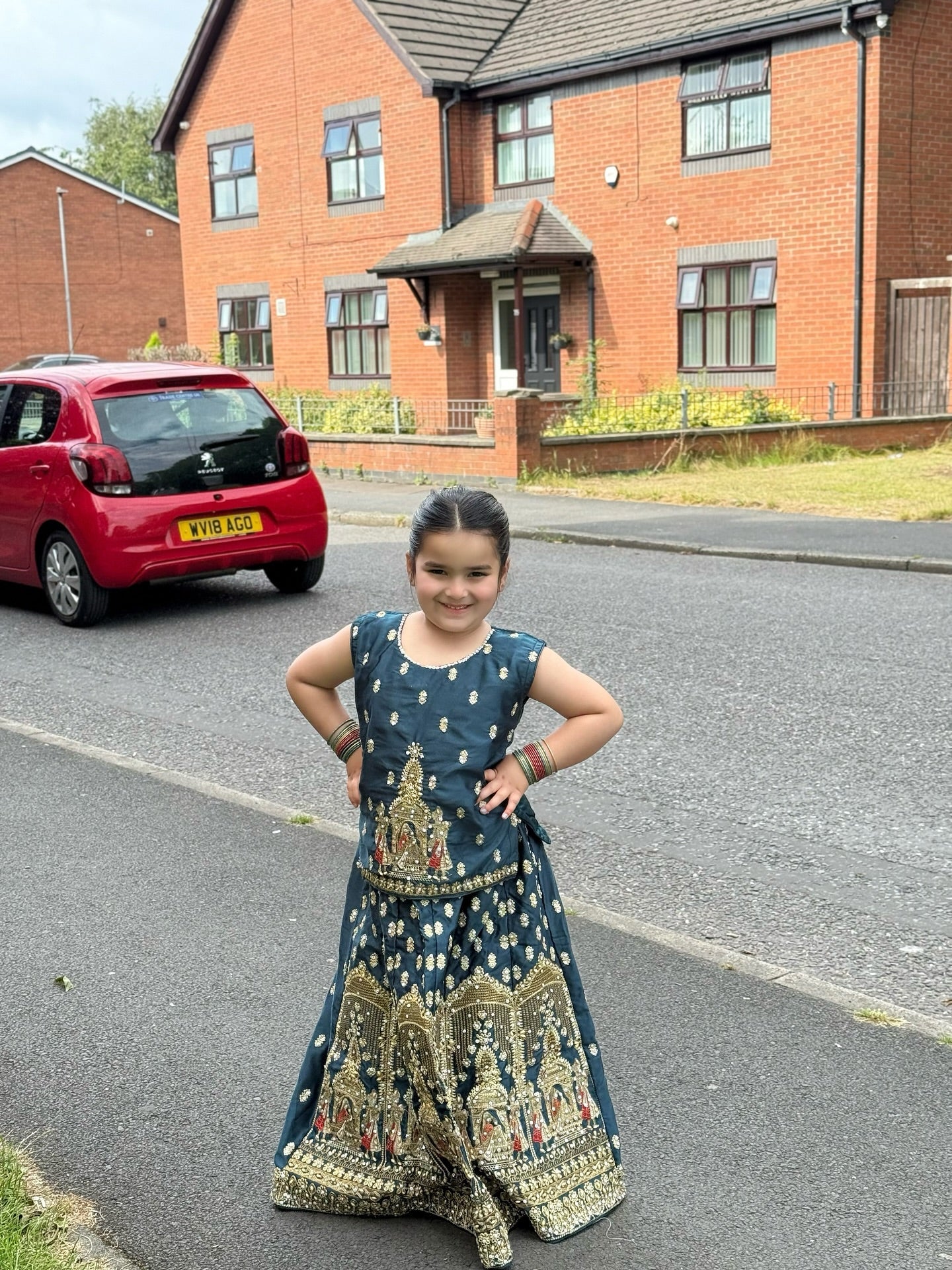 Fabric: Shamoz Silk Pattern: Fancy Embroidery Color:Peacock Design Cut: Lehnga Choli Shamroz Silk Choli is adorned with exquisite hand work embroided Lehnga is a testament to craftsmanship.